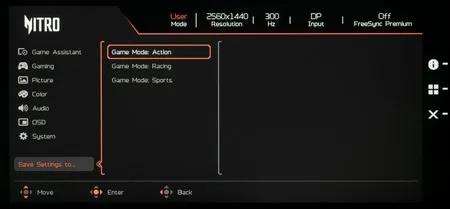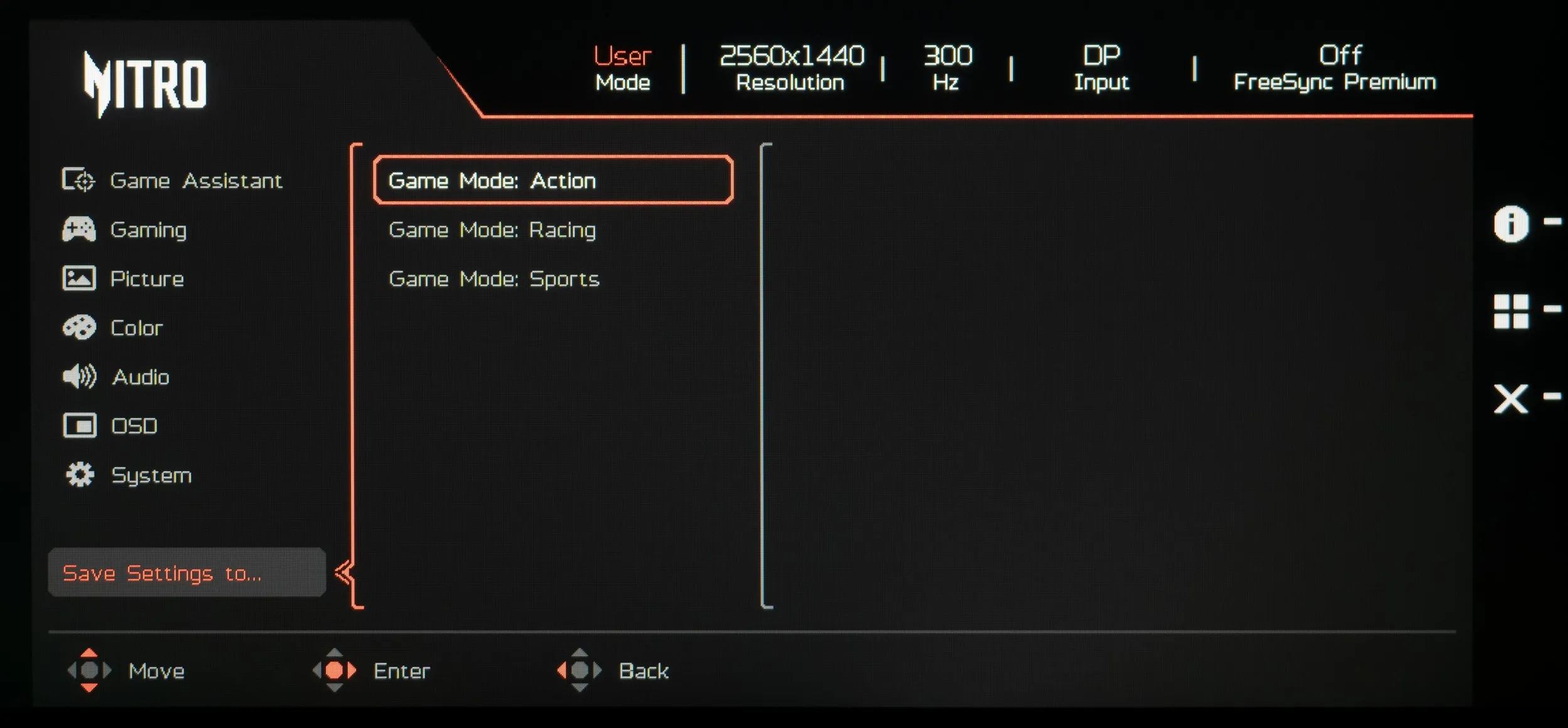 Последней же функцией в основном меню является возможность сохранения выполненных изменений в память монитора, а точнее – в один из трёх игровых пресетов. Для некоторых пользователей это может быть актуально.