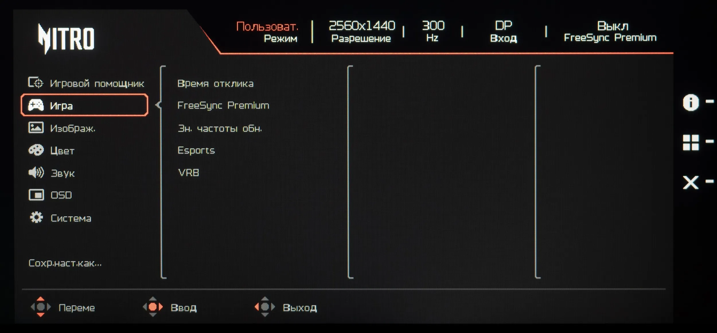 В вопросе поддержки этих самых систем у новинки Acer из среднебюджетной серии Nitro всё хорошо: поддерживаются Adaptive-Sync, AMD FreeSync Premium и NVIDIA G-Sync Compatible в диапазоне от 48 до 300 Гц.