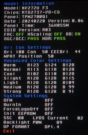 Благодаря полученному доступу в сервисное меню монитора мы узнали точную версию используемой в модели матрицы. Ею выступает TPM270WQ1 от «сборщика» в лице крупнейшего концерна TPV. Производитель часто использует «чистые» панели от более именитых производителей матриц и интегрирует в них необходимую по характеристикам систему подсветки. Похоже, что именно в таком формате взаимодействия появилась указанная панель.