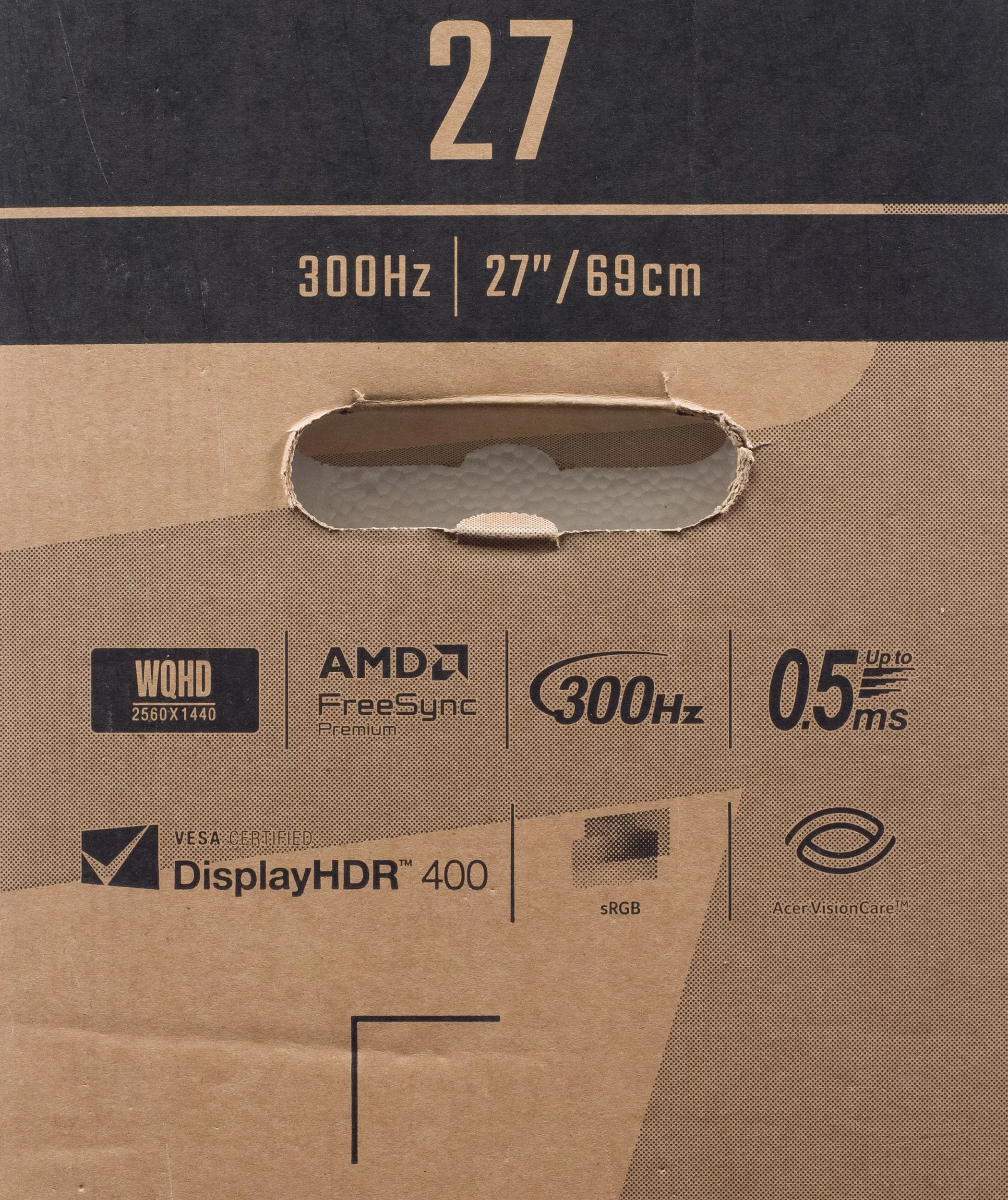 Компания Acer сделала ход конём и выпустила в продажу самый доступный 300 Гц 27-дюймовый монитор стандарта WQHD (2560 x 1440 пикселей) на базе IPS-подобной матрицы. Среди ассортимента всех крупнейших А-брендов ничего дешевле не найти и это, безусловно, на руку Acer. Многие же покупатели только и делают, что гоняются за высокими цифрами из технических характеристик: яркости и контраста побольше, время отклика пониже, цветовой охват пошире. Ну и чем дешевле, тем лучше. Для любителей поиграть же важна и частота вертикальной развёртки (частота обновления) – чем она выше, тем плавнее и, в основном, четче динамическое изображение на экране.