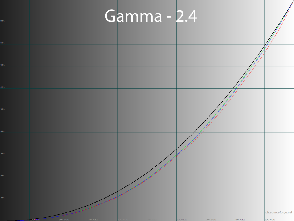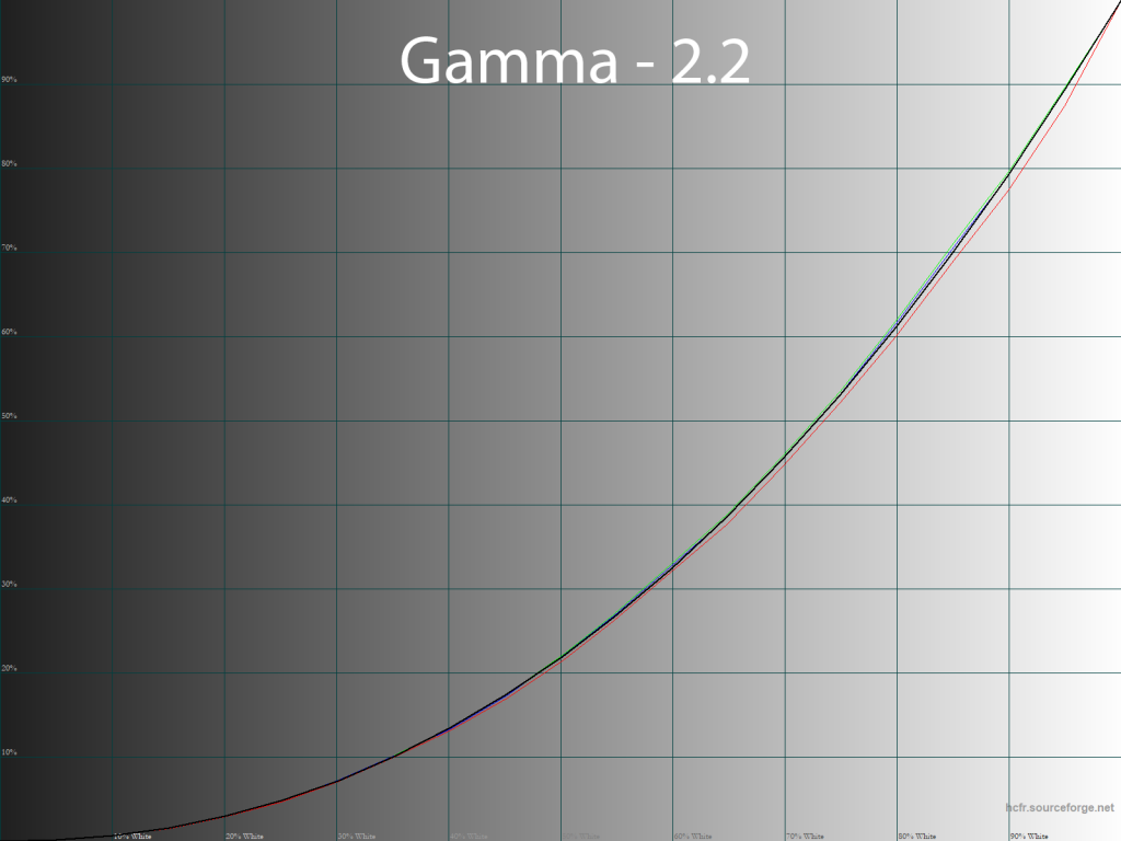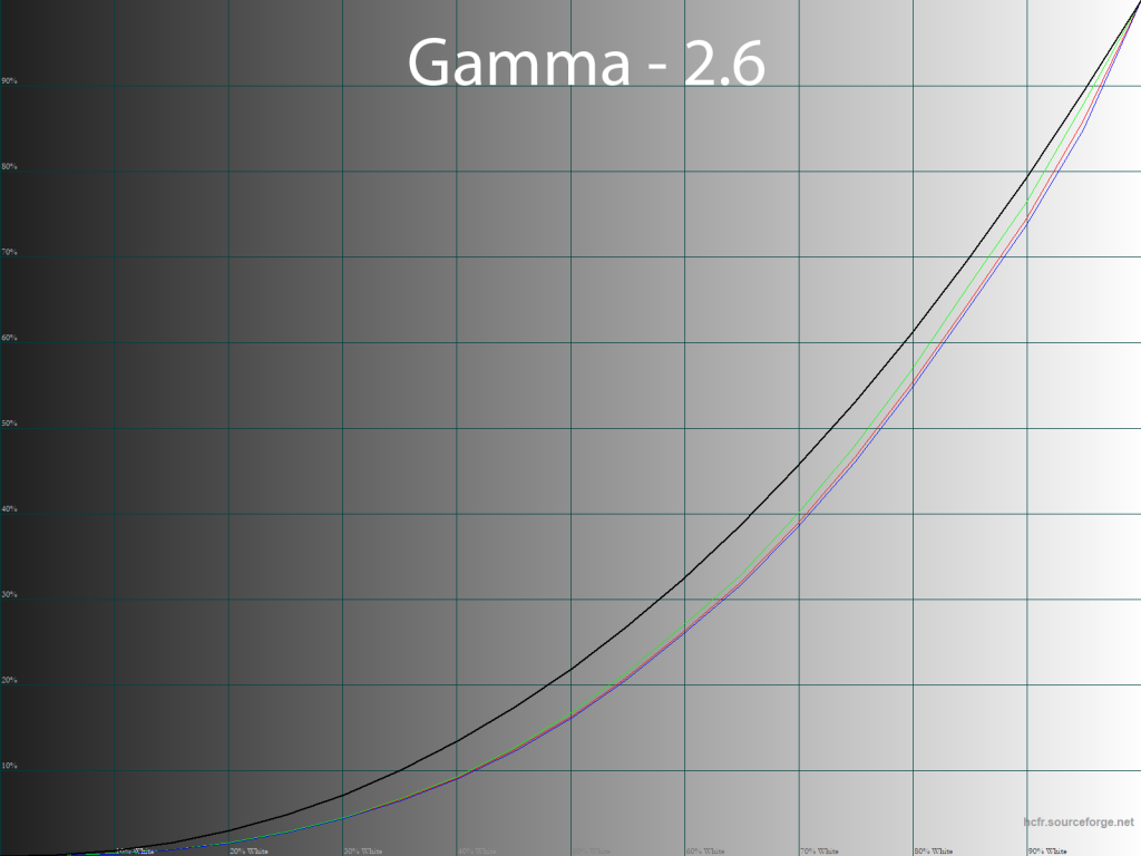 С изначальной настройкой гаммы, как мы уже выяснили, проблем у монитора нет. Точность настройки велика и сохраняется она на том же уровне и для четырех оставшихся режимов «Гамма». Разница между измеренными значениями и заявленными составляет не более 0.02, что является прекрасным результатом.