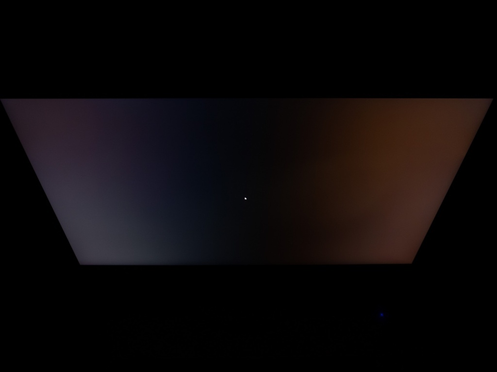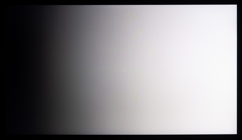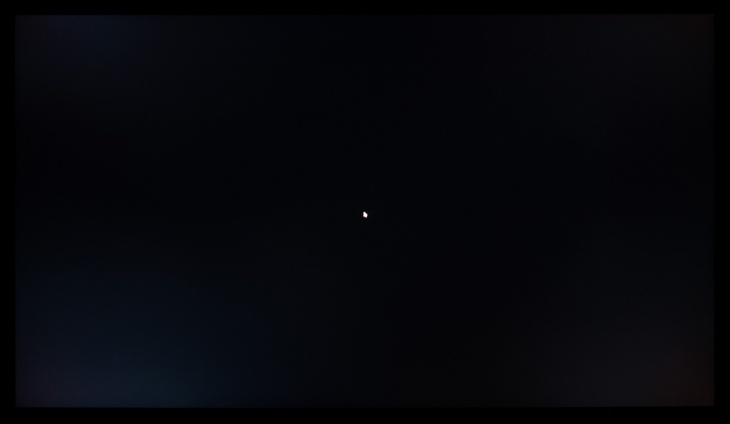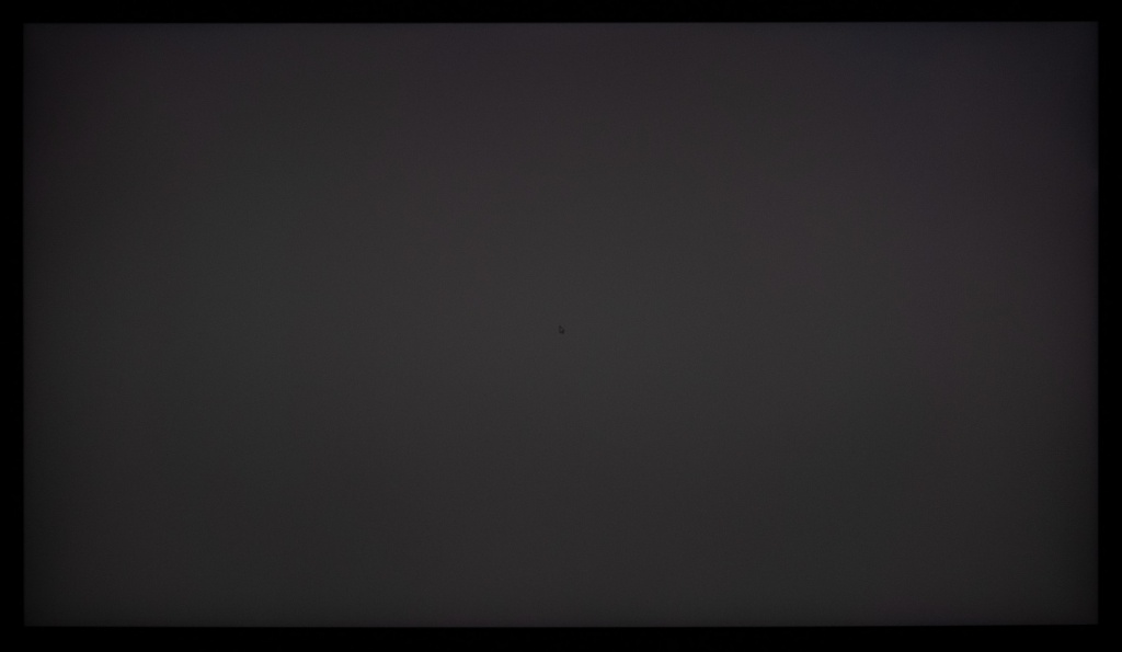 Теперь рассмотрим черный фон, оценив его «равномерность» по двум фотографиям, сделанным на разном отдалении от экрана (~70 см и 150 см), чтобы вы могли наглядно оценить влияние уже всем поднадоевшего Glow-эффекта и узнать реальную равномерность подсветки без его учёта.