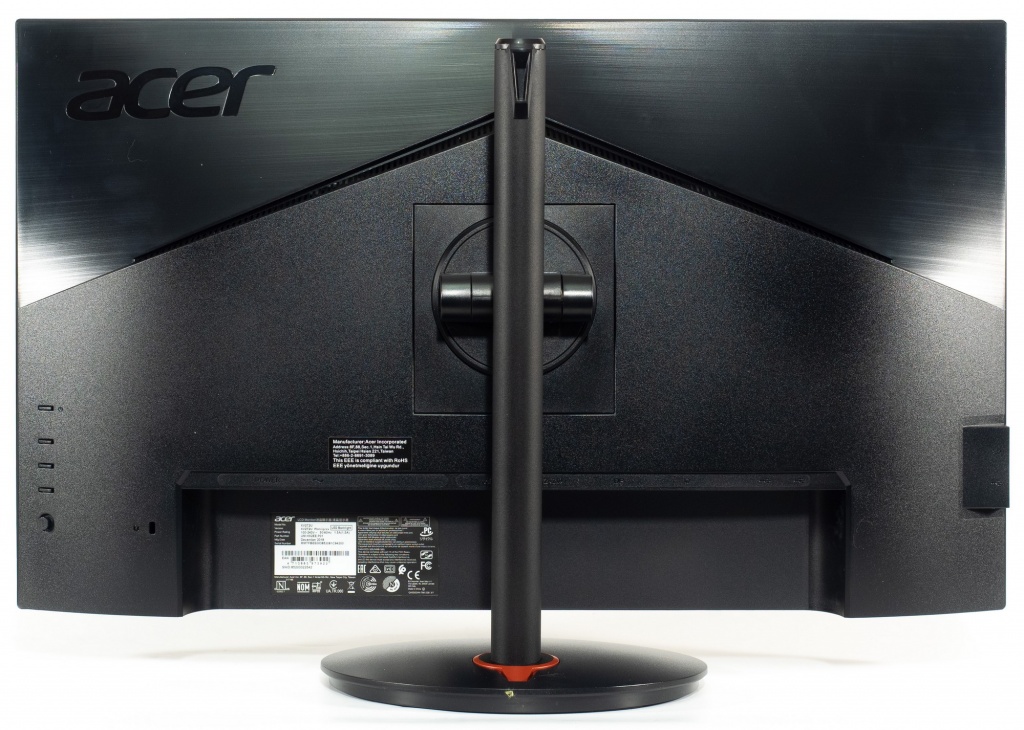 Спереди перед нами знакомый «безрамочный» корпус и пластиковая накладка из фактурного пластика, на котором разместился логотип Acer вместо логотипа серии (Predator, как в случае с X27 или тем же XB271HUb). Сзади используется два вида пластика: фактурный с эффектом шлифованного металла и обычный – матовый чёрный.
