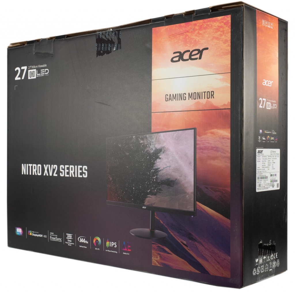 С двух сторон упаковки представлены фотографии монитора, логотипы компании, упомянута серия Nitro, относящаяся к игровой линейке, а также восемь пиктограмм, рассказывающих об основных особенностях модели. Лаконично и стильно!