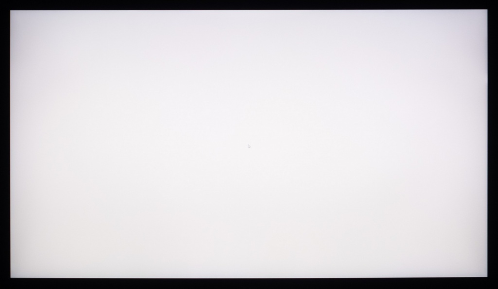 Фотография выше демонстрирует белое поле с минимальными коррекциями в графическом редакторе для более наглядного представления происходящего на экране с точки зрения равномерности светлого поля. Разница по яркости между центральной зоной, краями и углами панели хорошо видна. Сильнее всего, в нашем случае, затемнён верхний левый край. Кроме того, хорошо видна неравномерность цветовой температуры, особенно в верхней части матрицы – удивительная особенность панели Innolux, которая сохраняется на всех экземплярах.