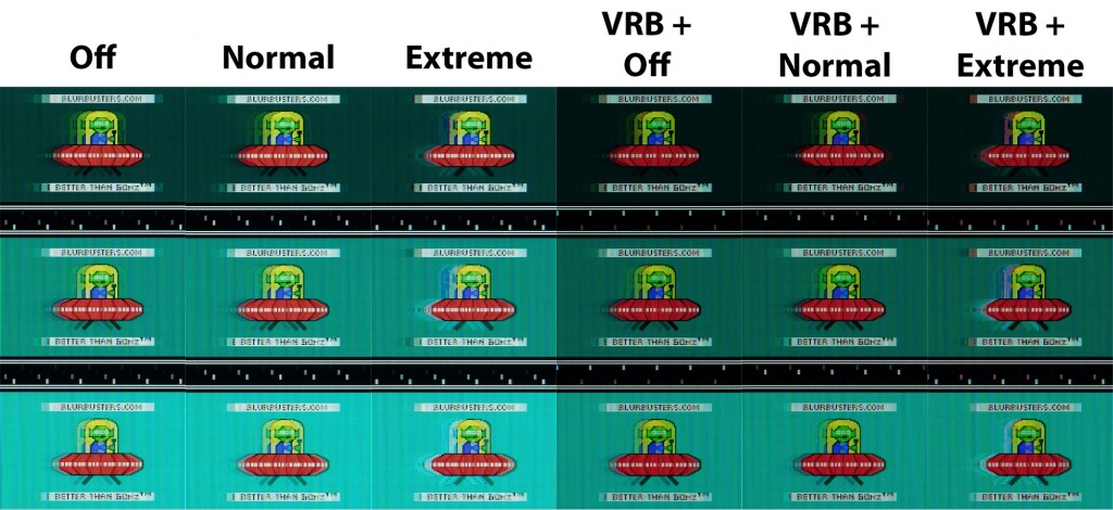 При активации режима работы подсветки VRB яркость подсветки автоматически выставляется на максимальном уровне, однако реальные показатели яркости сильно отличаются: в режиме Over Drive - Normal максимально измеренная яркость составила 185 нит, а при переходе в режим Extreme снизилась до 101 нит. Коэффициент контрастности в обоих случаях изменился в пределах погрешности измерений (в сторону увеличения).