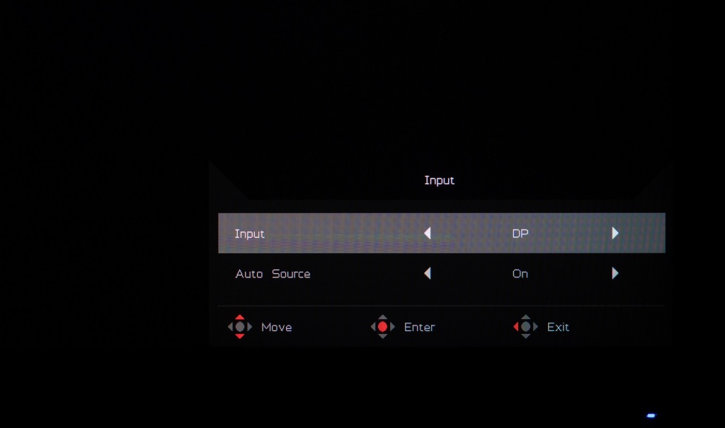 Система управления в Nitro XV272UPbmiiprzx вполне обычная – как и у большинства решений от Acer. Она построена на базе блока с четырьмя физическими клавишами и пятипозиционного джойстика, размещённых в задней части корпуса с правой стороны.