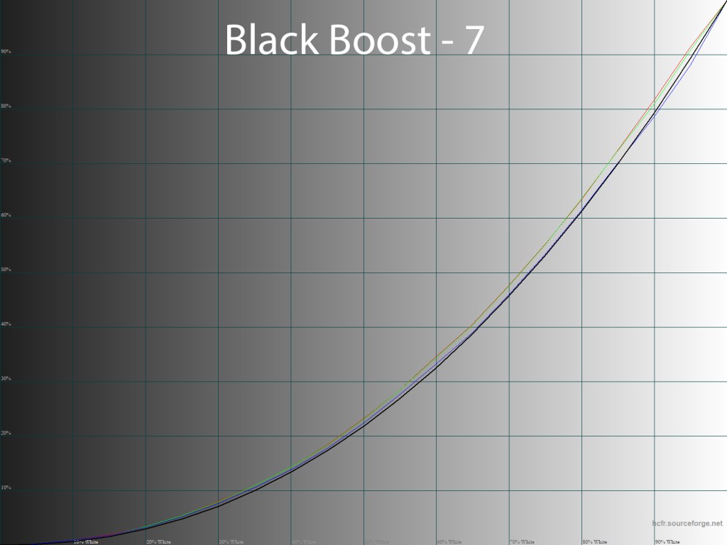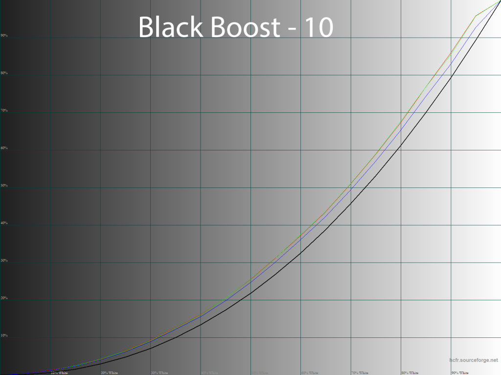Параметр Black Boost, как следует из его названия, высветляет тени и делает это довольно плавно, но, между тем, затрагивает и все остальные тона, что может негативно сказаться на общей точности цветопередачи.