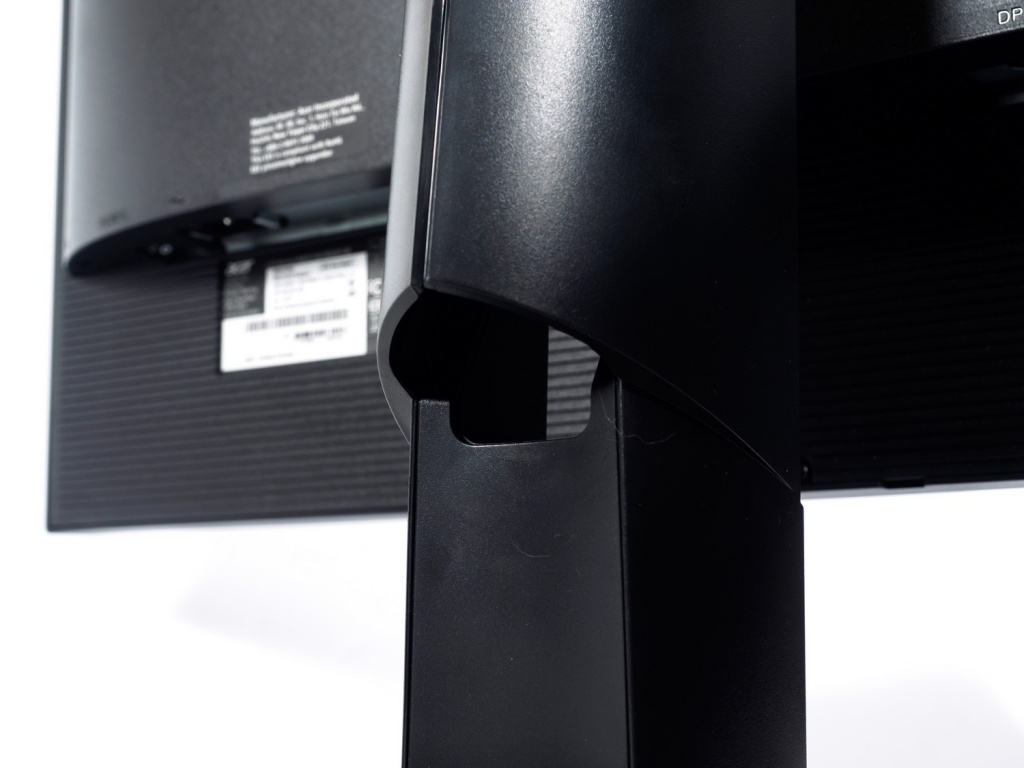 Монитор оснащён быстросъёмным соединением с центральной колонной. Тут же расположились четыре отверстия с уже закрученными винтами, с помощью которых можно установить VESA-совместимый кронштейн, если вам, вдруг, не хватит стандартных возможностей подставки дисплея.