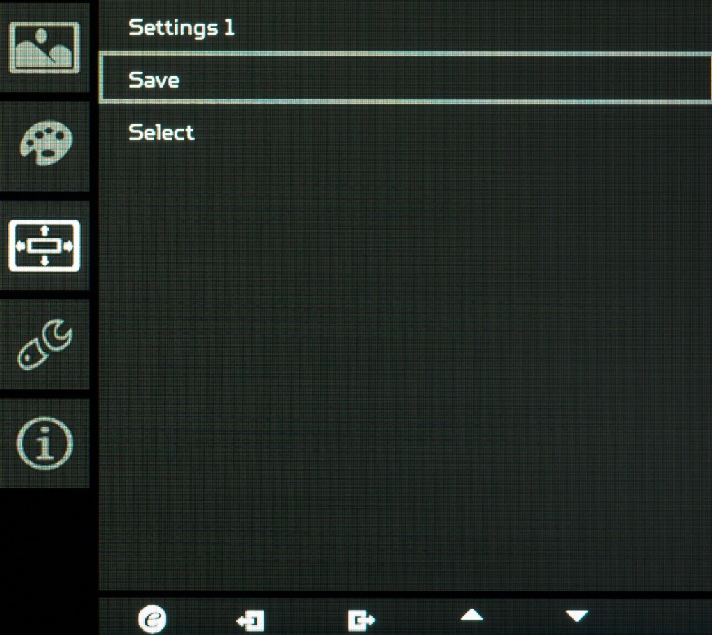 Доступ к сервисному меню был найден за счет зажатия крайней левой клавиши во время включения монитора. После появления картинки на экране клавишу необходимо нажать повторно и перед вами предстанет следующая картина: