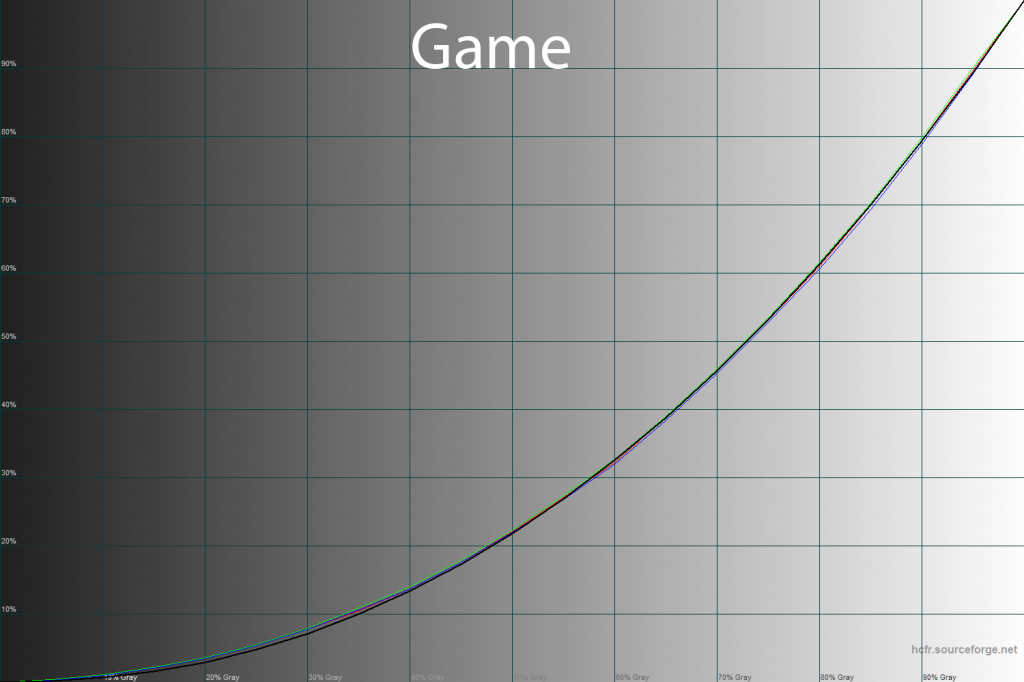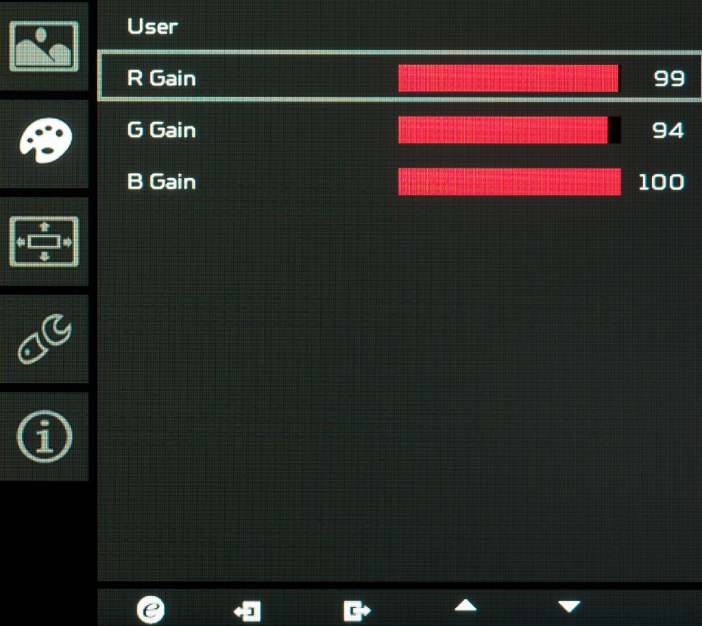 Теперь вернёмся к заводским установкам и произведём ручную настройку, при которых XB271HUbmiprz переходит автоматически в режим User. Гамма-кривые после изменений стали пролегать чуть выше, чем по умолчанию, контрастность картинки понизилась. Полностью пропали проблемы точки белого и оттенков серого – это куда важнее, чем всё остальное.