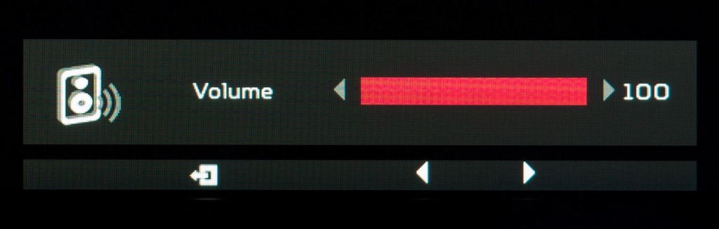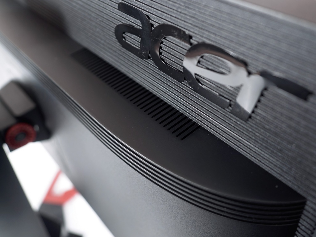 Есть у монитора и встроенная акустическая система, знакомая по другим мониторам серии Predator. Два небольших по размерам динамика мощностью 2 Вт каждый расположены по обе стороны корпуса за пластиковой сеткой, а звук направлен назад, что является не самым удачным решением. Говоря о качестве звука, можно отметить, что оно находится на достаточно низком уровне. Любая стереопара за 400-700 рублей будет играть в разы качественнее.