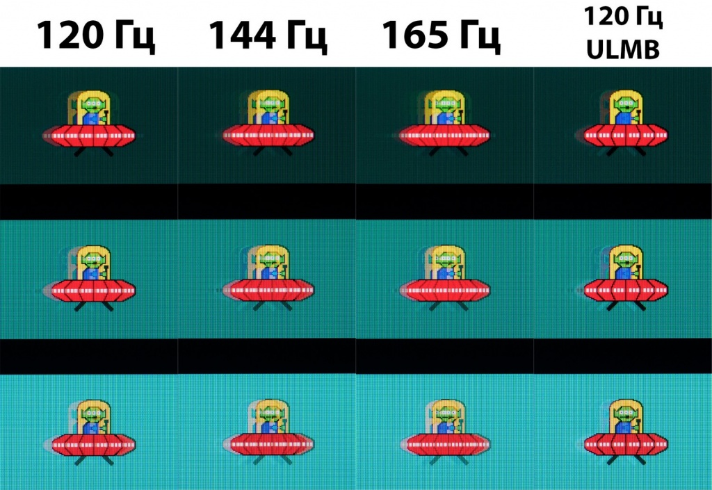 В ходе дальнейшей проверки монитора при разной частоте вертикальной развёртки стало ясно, что шлейфы при ее увеличении медленно, но верно уменьшаются. Выявить такие различия на глаз очень сложно, но приведённые выше примеры подтверждают, что разница есть, пускай и минимальная.