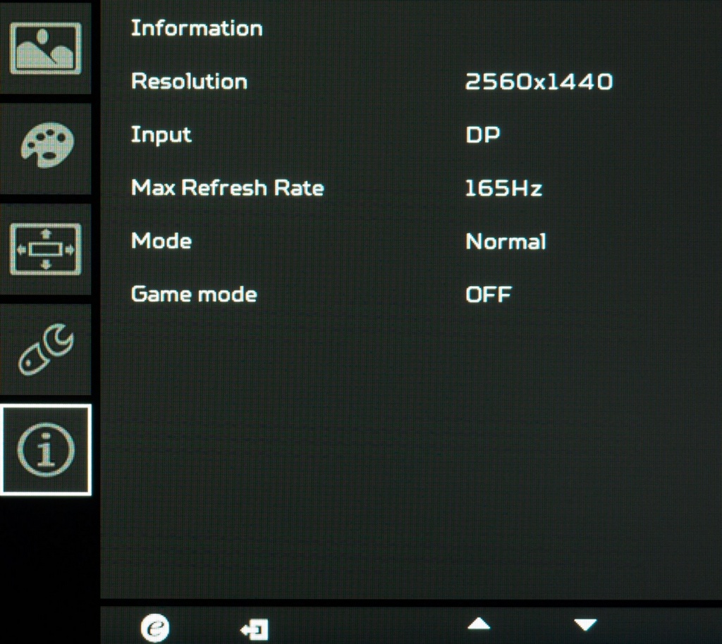 Исходя из ТХ модели и найденных данных в сервисном меню легко узнать используемую в мониторе матрицу – ею стала современная «безрамочная» AHVA панель производства AU Optronics (AUO). Модель M270DAN02-6Q0 – это 27-дюймовая 8-битная панель с разрешением 2560 x 1440 пикселей, соотношением сторон 16:9, стандартным цветовым охватом, W-LED подсветкой и максимальной частотой вертикальной развёртки в 165 Гц при активации разгона в настройках OSD меню. Сразу отметим, что в том же ASUS PG279Q используется иная матрица.