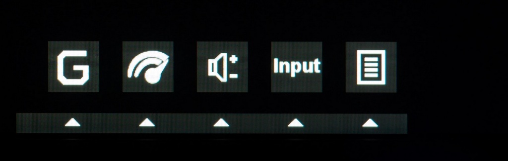 В качестве функций с быстрым доступом производитель выбрал следующие: разгон матрицы OD, регулировка уровня громкости встроенной акустической системы, переключение источника сигнала. Игровая же «нота» в XB271HUbmiprz добавила в этот список кнопку G, по выбору которой монитор переход в «игровой» режим, в котором можно выбрать один из трех настроенных пользователем пресетов. Из-за этого основная полоса с доступом к настройкам меняет своё наполнение – приходится её прокручивать, чтобы увидеть все значки-кнопки.