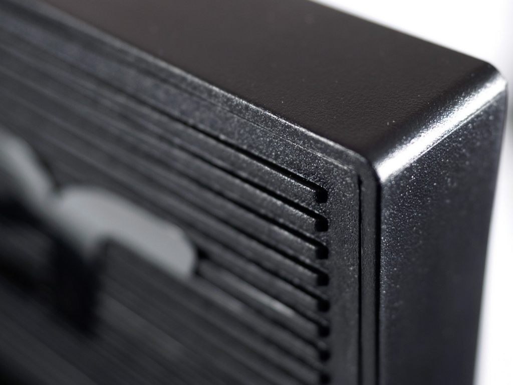 Люфты отсутствуют, корпус не поддаётся скручиванию ввиду не малой толщины, не хрустит и не поскрипывает при переноске или изменении положения. К качеству покраски и обработки элементов не придраться. Охлаждение электронной начинки происходит за счёт вентиляционных отверстий (перфораций), которые расположились в верхней зоне специального выступа, где разместилась управляющая электроника и интерфейсы подключения.