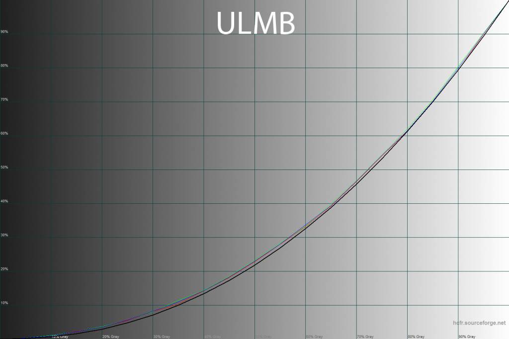 К нашему удивлению, активация ULMB режима не привела к сильным изменениям. Конечно, яркость заметно снизилась, но в остальном мы наблюдаем уже знакомую картину.
