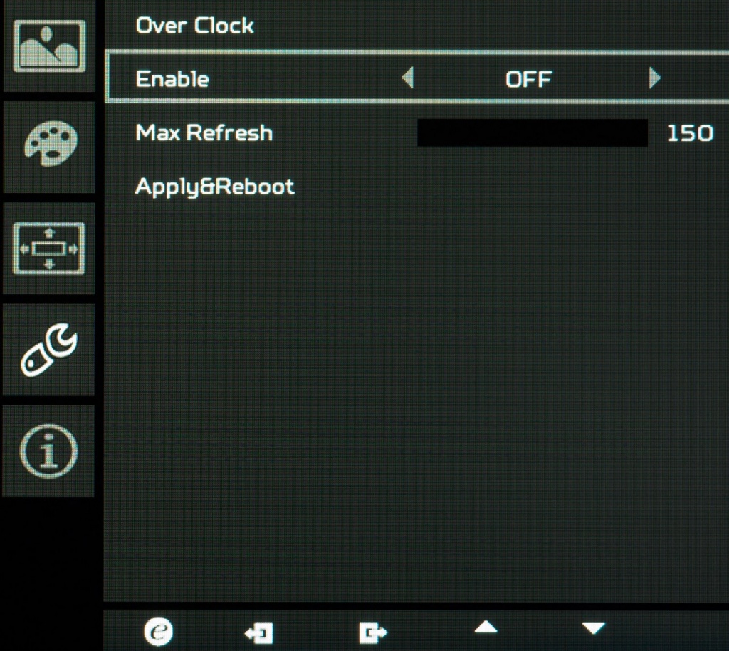 Система управления в последней ревизии XB271HUbmiprz точно такая же, как у первых экземпляров, а также многих других ранее выпущенных игровых моделей Acer. В основе которой лежат шесть физических клавиш в правой нижней части корпуса.