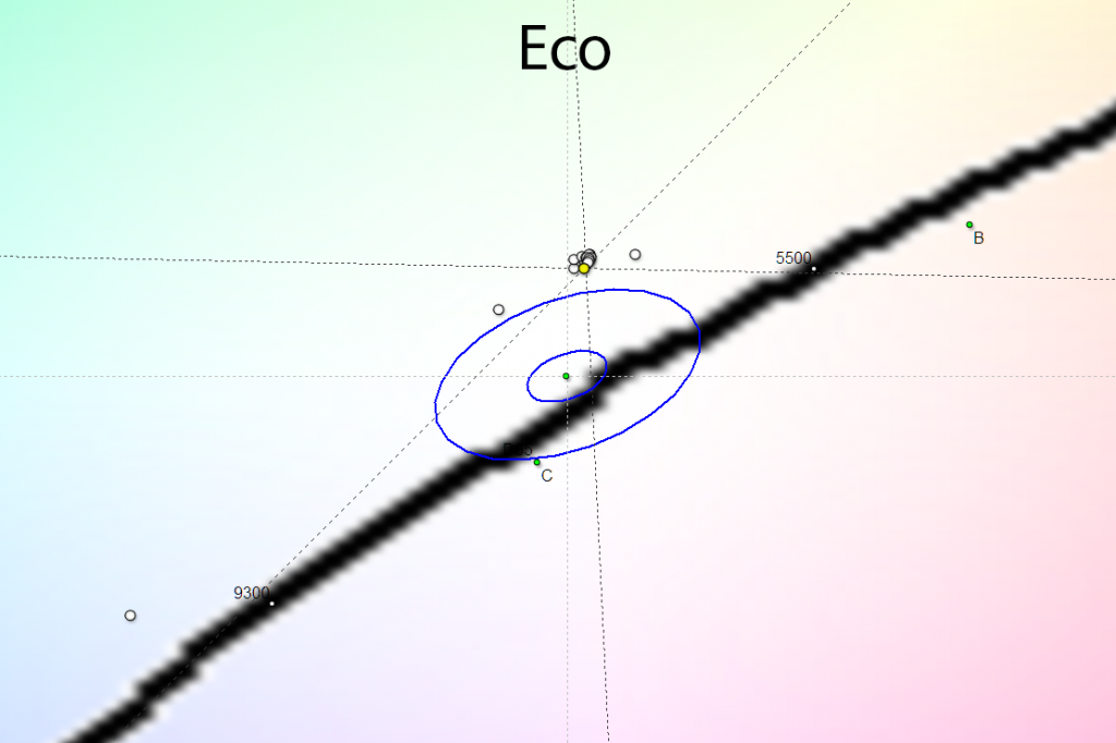 Теперь перейдём к рассмотрению равномерности цветовой температуры на всей площади экрана.