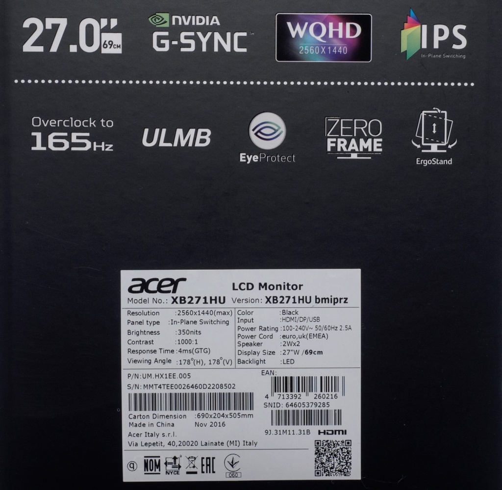 Модель Acer Predator XB271HUbmiprz была представлена в начале 2016 года и по долгу «службы» была проверена мною ещё год назад. За это время она не раз успевала покинуть Российский рынок, резко изменялась в цене, и, конечно, так и не смогла выбиться в топ-продаж в своём сегменте, что при таком «ходе событий» вовсе не удивительно.