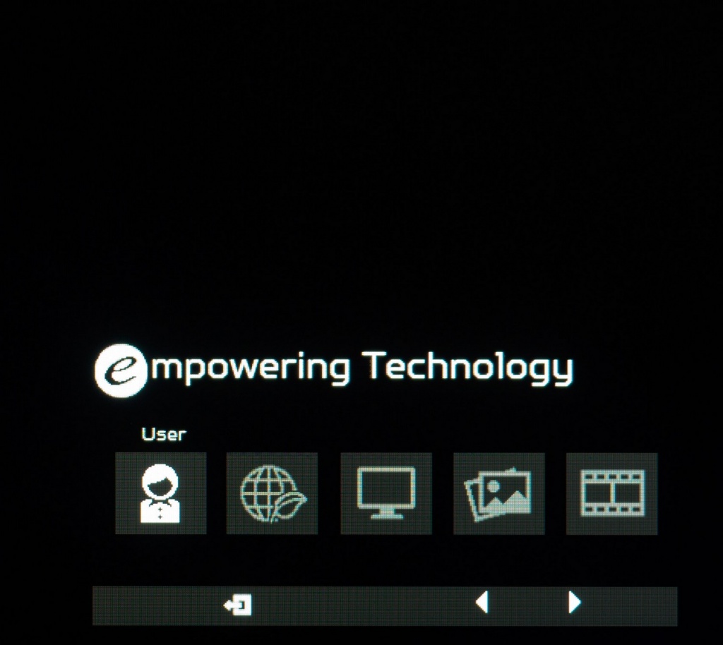 В новинке от Acer предустановленно пять основных режимов eColor, дополненных пресетом для ручных настроек, режимом работы подсветки ULMB и sRGB Mode, который полностью идентичен пресету Standard (поэтому мы его не включили в тестирование). При любых правках основных рабочих параметров монитор автоматически переходит в режим User (Пользовательский).