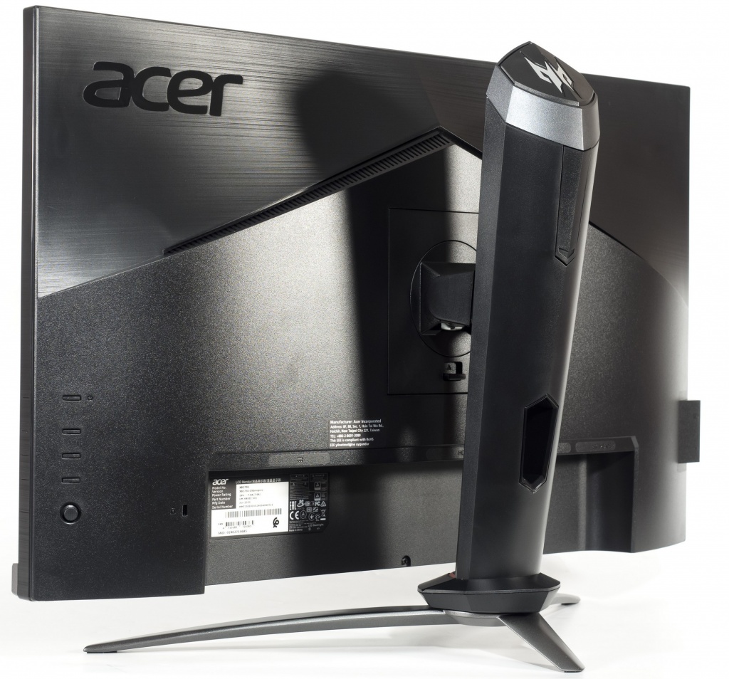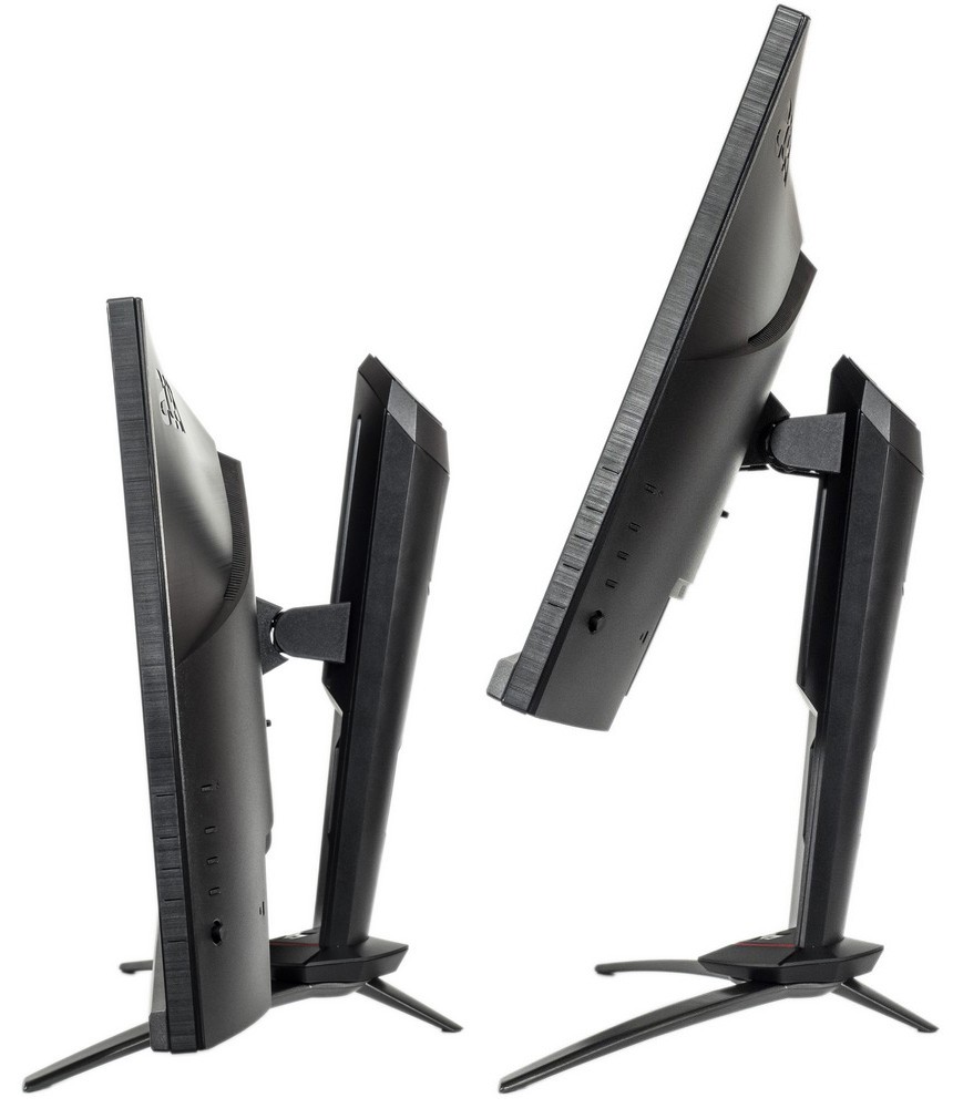 В новинке используется «безрамочный» дизайн с минимальными внутренними рамками с трёх сторон, а классическая нижняя накладка, в случае с XB273UGS, значительно нарастила свои «мускулы», обзаведясь двумя RGB-полосами внешней подсветки. Сам же корпус идентичен большинству новых решений из серии Nitro, что удивительно для более премиальной линейки Predator. Используется быстросъёмное крепление центральной стойки и подставка, предлагающая широкие возможности по изменению положения корпуса в пространстве.