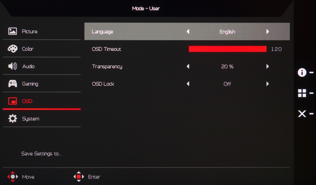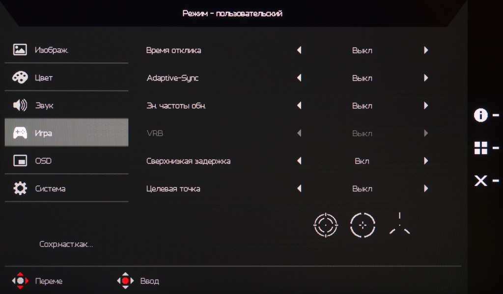 Внешний вид меню нам хорошо знаком по серии продуктов Predator и Nitro. Для нового XB273UGS никаких значимых изменений сделано не было.