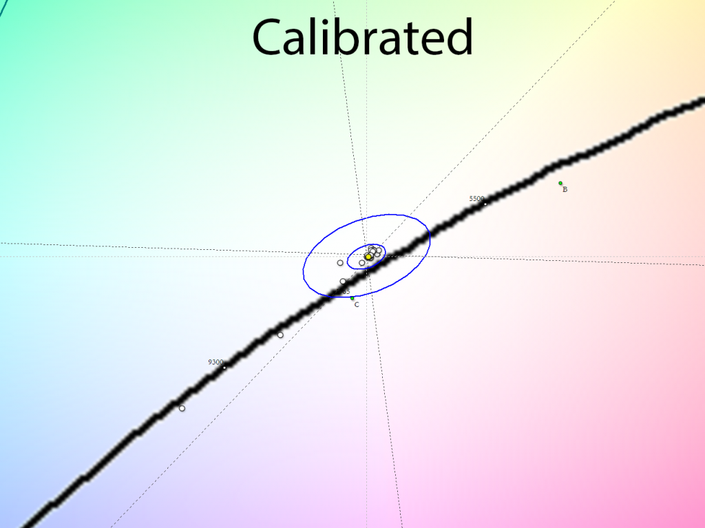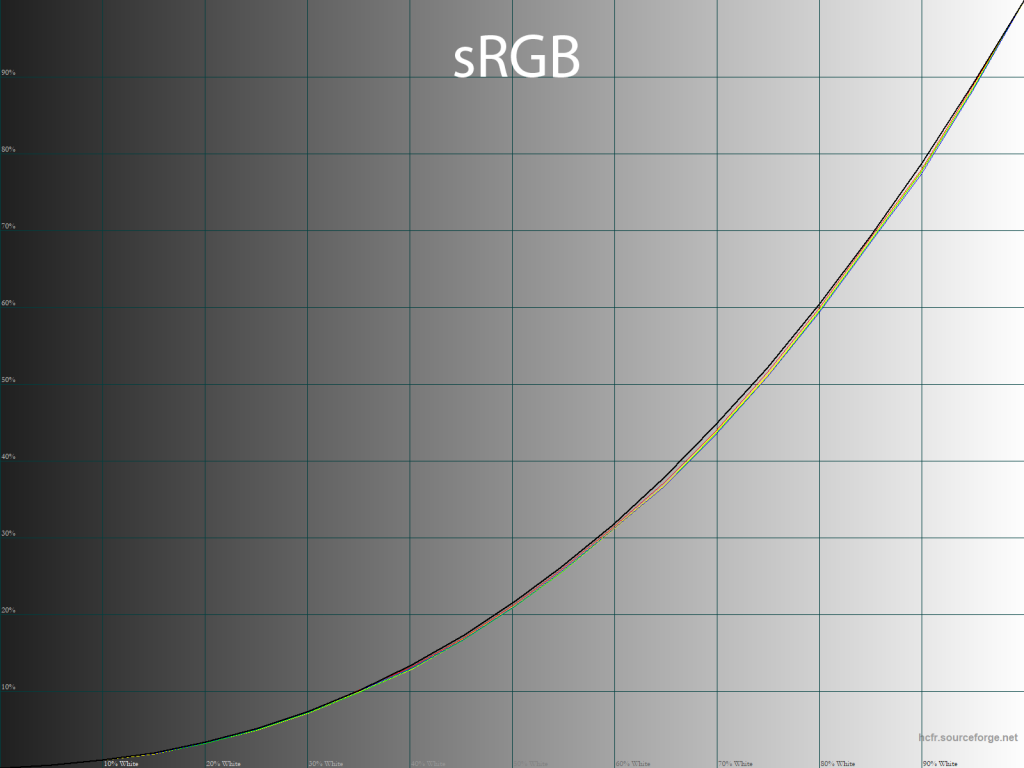 В ходе калибровки новинки никаких проблем не возникает. Гамма-кривые становятся идеальными, как точка белого и баланс серого. Если же вы не хотите делать градиенты хуже, то можете остановиться на ручной настройке и профилировании дисплея – получите полностью удовлетворяющий вас результат, особенно в условиях использования полученного профиля в ПО с поддержкой CMS (Color Management System).