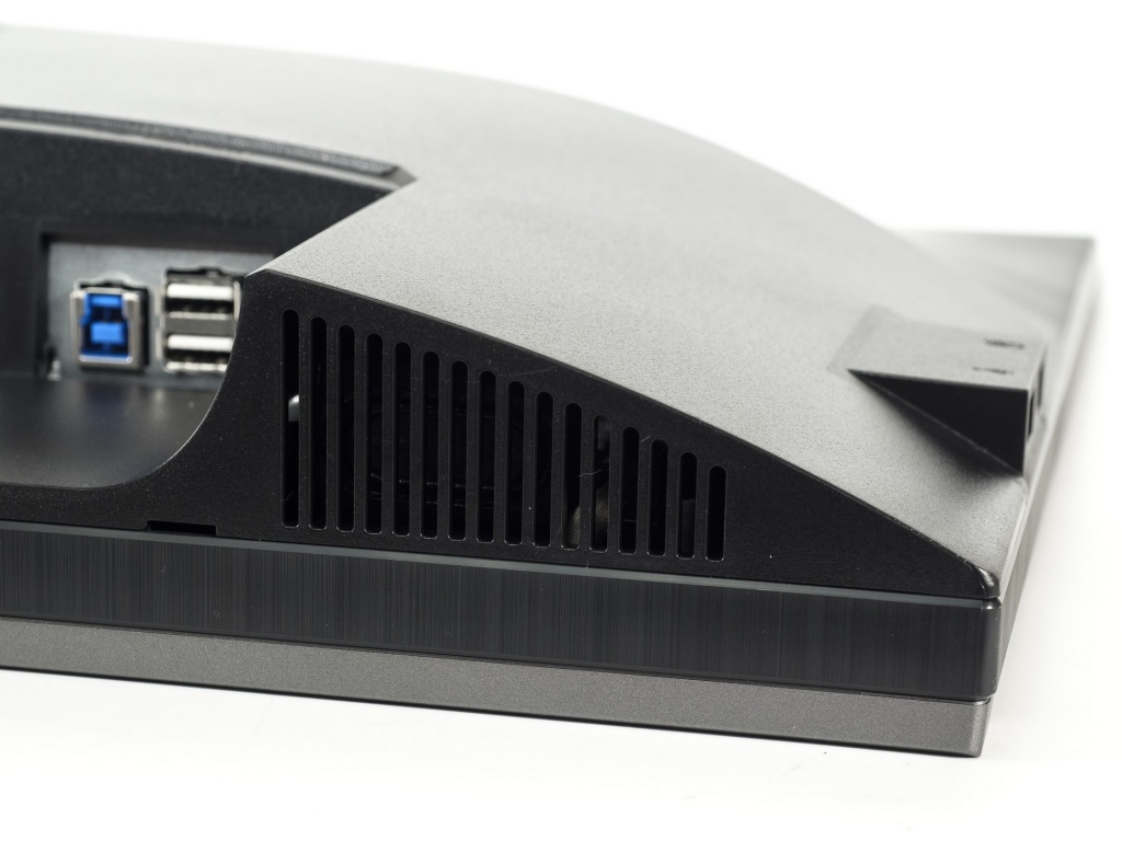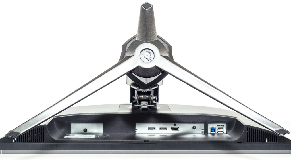 В задней части монитора расположились все основные интерфейсы для подключения, ориентированные вниз. Подключать кабели благодаря наличию Pivot-переворота легко и просто.
