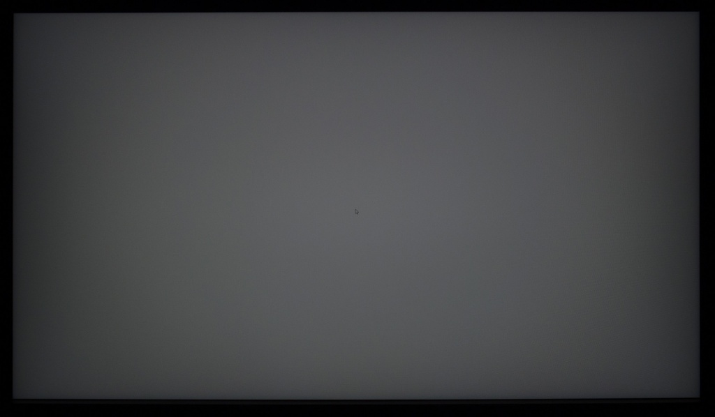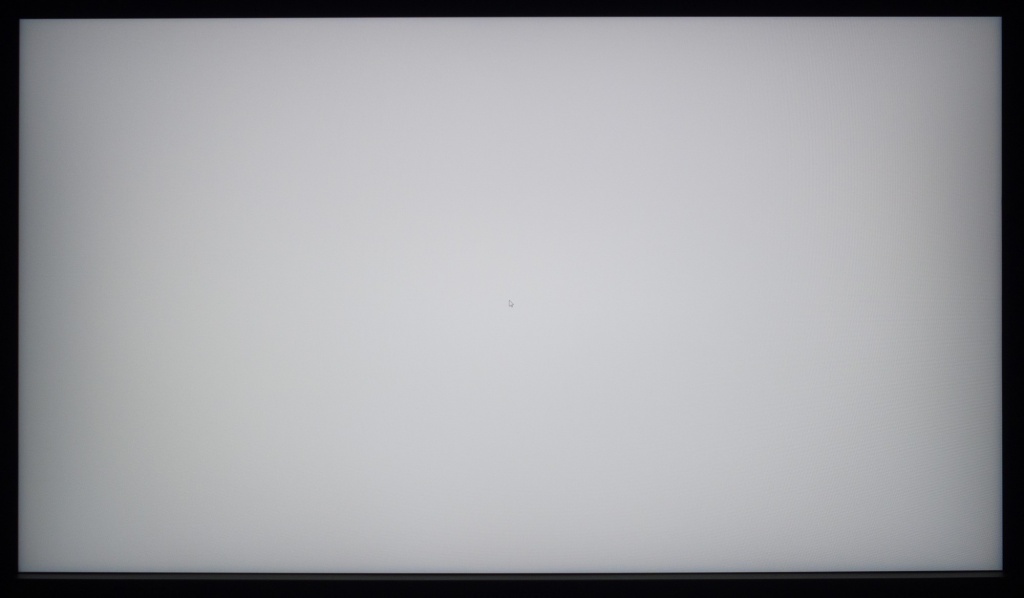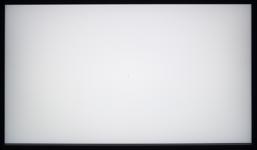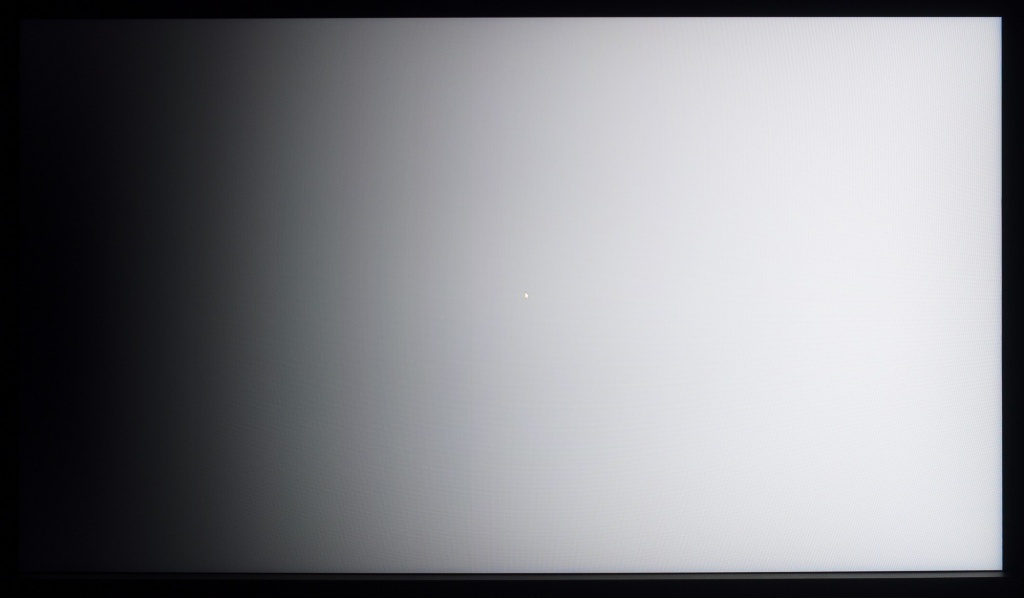 Фотография выше демонстрирует белое поле с минимальными коррекциями в графическом редакторе для более наглядного представления происходящего на экране с точки зрения равномерности светлого поля. Разница по яркости между центральной зоной, краями и углами панели хорошо видна.