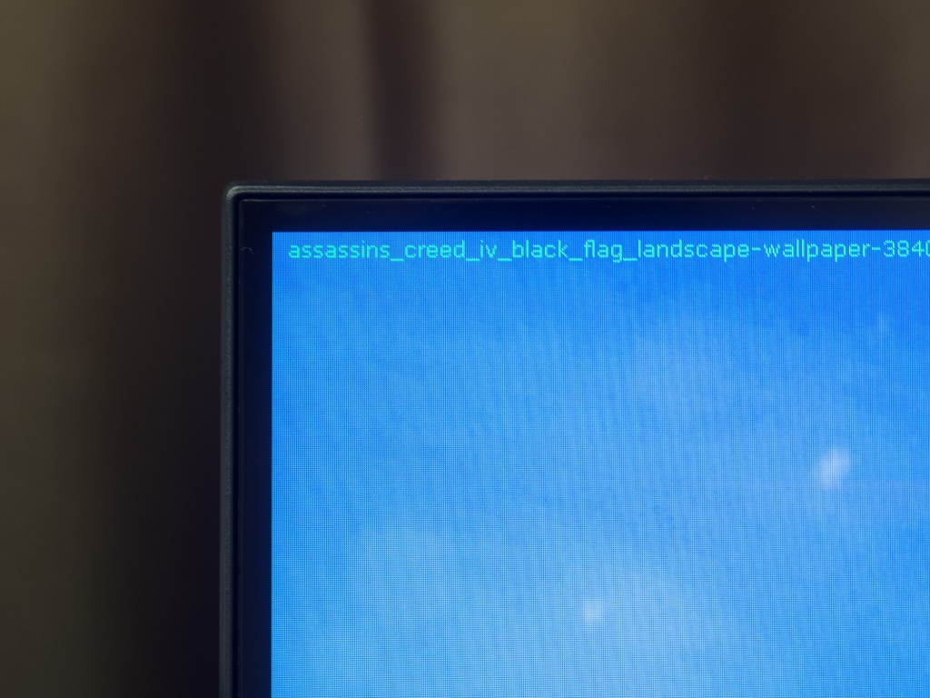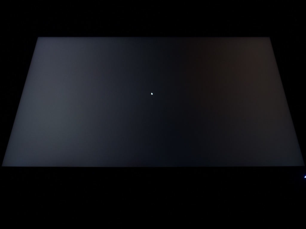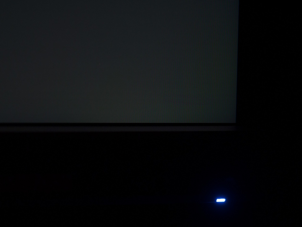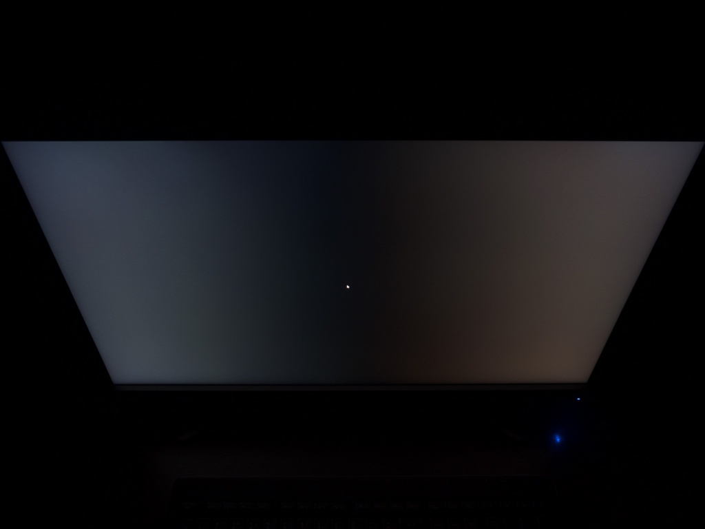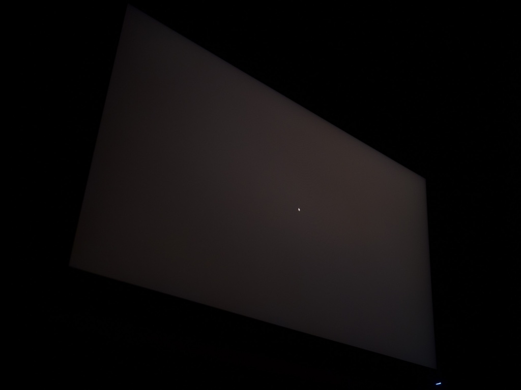Теперь рассмотрим черный фон, оценив его «равномерность» по двум фотографиям, сделанным на разном отдалении от экрана (~70 см и 150 см), чтобы вы могли наглядно оценить влияние уже всем надоевшего Glow-эффекта и узнать реальную равномерность подсветки без его учёта.