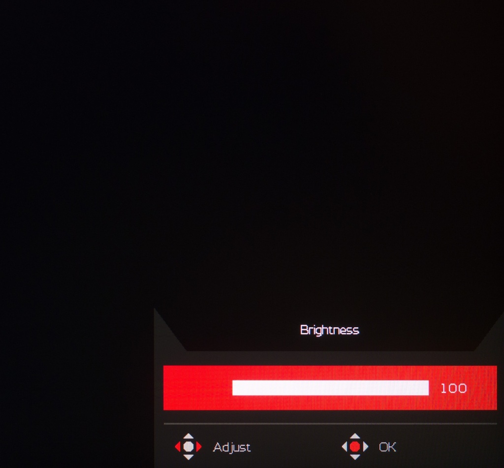 При активации двух подрежимов VRB яркость подсветки автоматически выставляется на уровне выставленном в основном режиме, однако реальные показатели яркости резко снижаются: если не поднимать яркость до 100 %, то вам предстоит работать при 35 и 28 нит соответственно. Приятного тут мало, да и играть с такой низкой яркостью в светлом помещении – так себе история… Установка же Brightness в максимальное положение не сильно поправит ситуацию – 53 и 42 нит – максимум на который вы можете рассчитывать со вставкой «чёрного кадра».