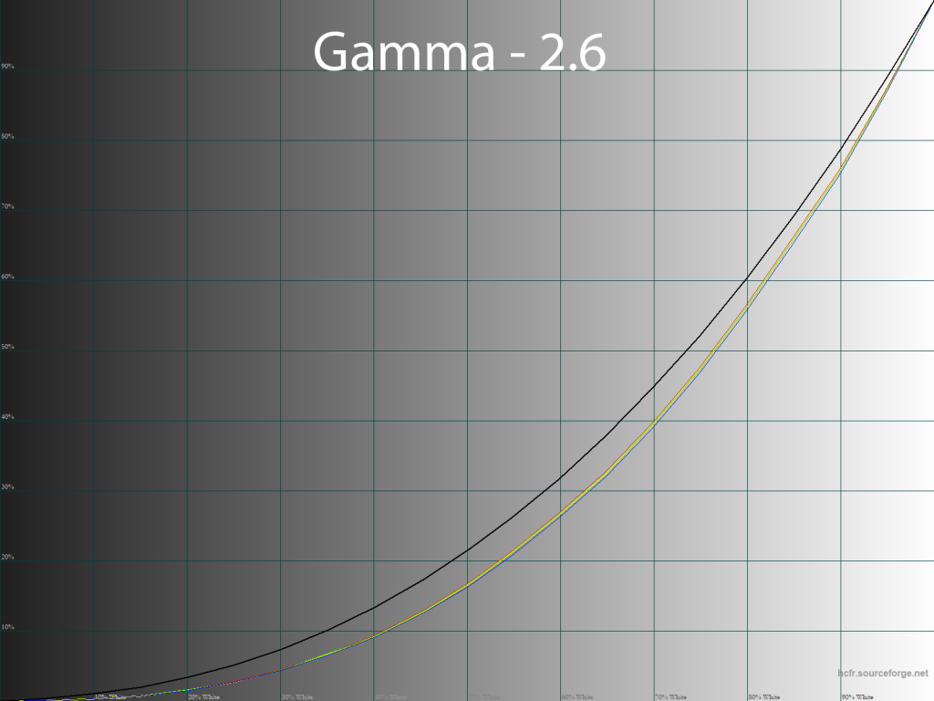 С изначальной настройкой гаммы, как мы уже выяснили, проблем у монитора нет. Точность настройки велика и сохраняется она на том же уровне и для четырех оставшихся режимов «Гамма». Разница между измеренными значениями и заявленными составляет не более 0.01, что является великолепным результатом.