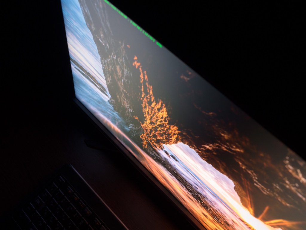 Из других особенностей модели следует отметить некий эффект волн (это наша интерпретация увиденного) в нижней части панели и чуть выше по левому и правому краям. С подобным мы столкнулись впервые. Видно это некими переливами-волнами на светлых оттенках при изменении угла просмотра либо положения глаз перед экраном. Эффект не исчезает со временем и является не самой приятной особенностью новинки. Нечто подобное мы стали замечать и в последних поставках монитора ASUS XG279Q, а поэтому возможный виновник здесь один – производитель матрицы – компания AU Optronics.