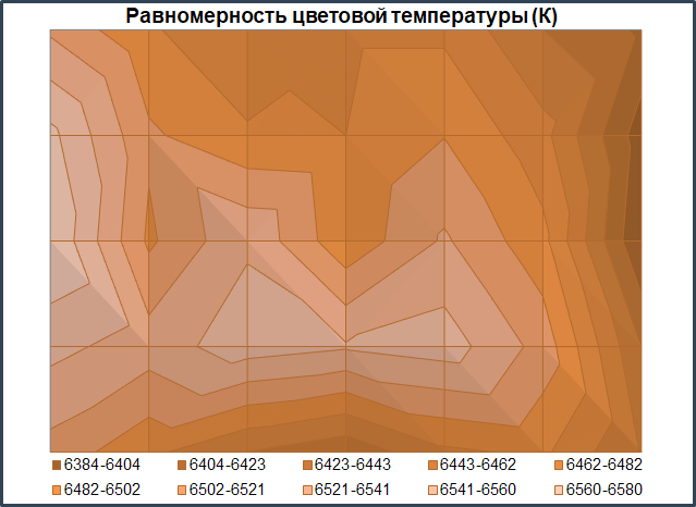 Теперь перейдём к рассмотрению равномерности цветовой температуры на всей площади экрана.