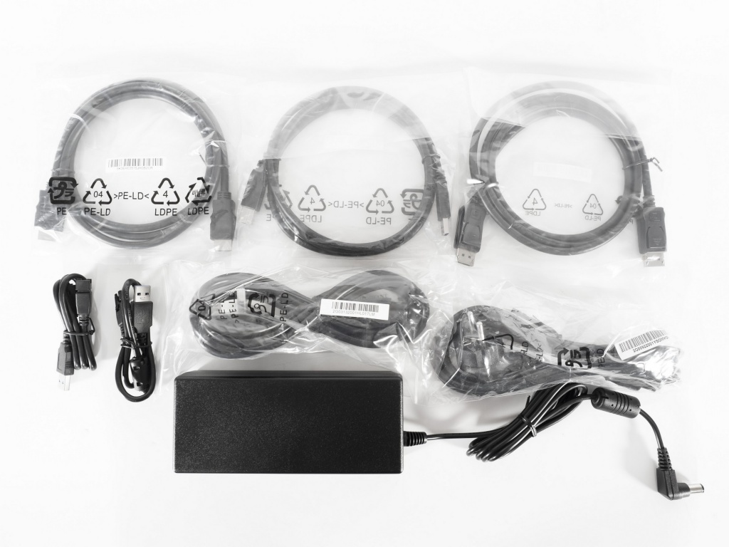 Набор максимально полный, соответствуют возможностям монитора и поэтому не вызывает нареканий. В редких случаях пользователю может понадобиться покупка исключительно более длинных сигнальных кабелей и только.