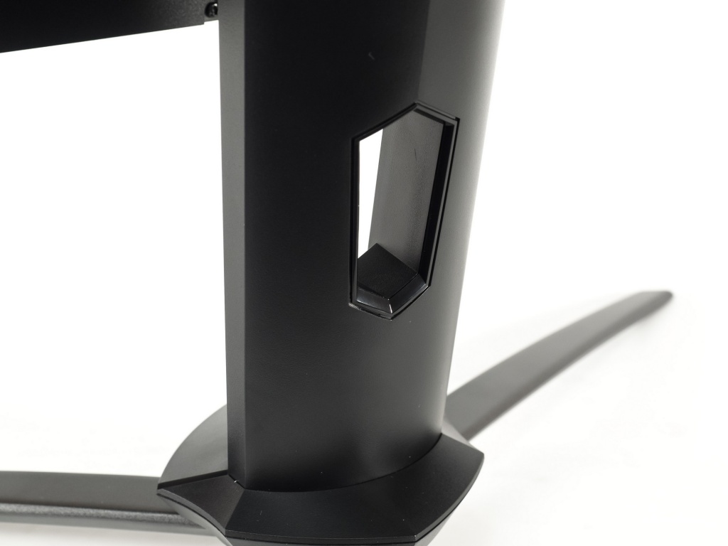 В сравнении с популярным предшественником XB271HUb cтойка стала в разы толще с расширением к верхней части и размещённым логотипом серии. В неё интегрирован откидывающийся механизм, выполняющий роль крючка для наушников. Новая подставка выполнена на манер старших решений бренда и представляет из себя широко расставленные три металлических ножки, надежно удерживающих готовую конструкцию. Впрочем, понравится такой подход производителя далеко не всем покупателям – многие из них отдают предпочтение более комфортным в использовании и размещении на столе прямоугольным или квадратным стойкам.