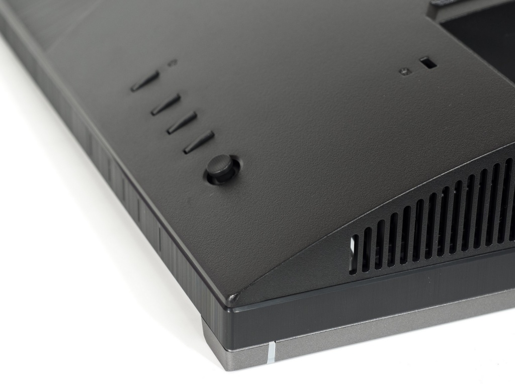 Встроенная акустическая система монитора общей мощностью 4 Вт (2 динамика по 2 Вт) не блистает высокой громкостью и качеством, а за управление отвечает блок из обычных физических клавиш и хорошо знакомый 5-позиционный джойстик.