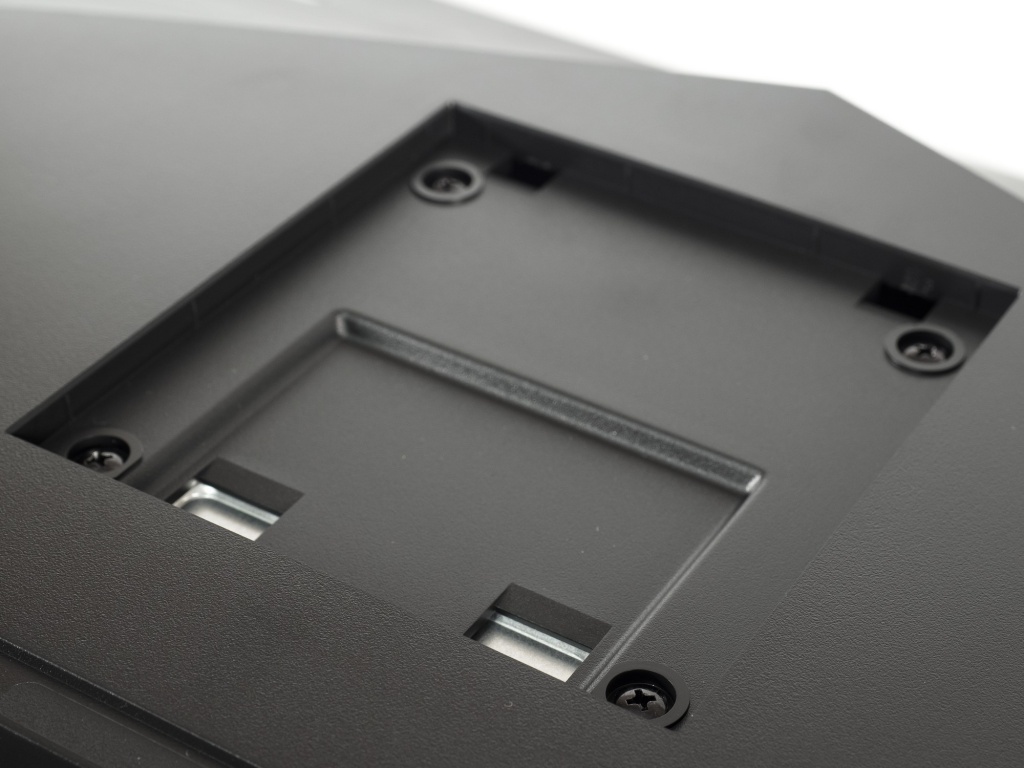 В новинке используется быстросъёмное соединение с корпусом без необходимости использования стороннего инструмента. Есть и поддержка VESA-совместимых кронштейнов стандарта 100 х 100 мм, а система прокладки кабелей представлена исключительно в виде специального окошка в центральной колонне.