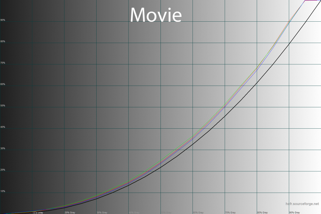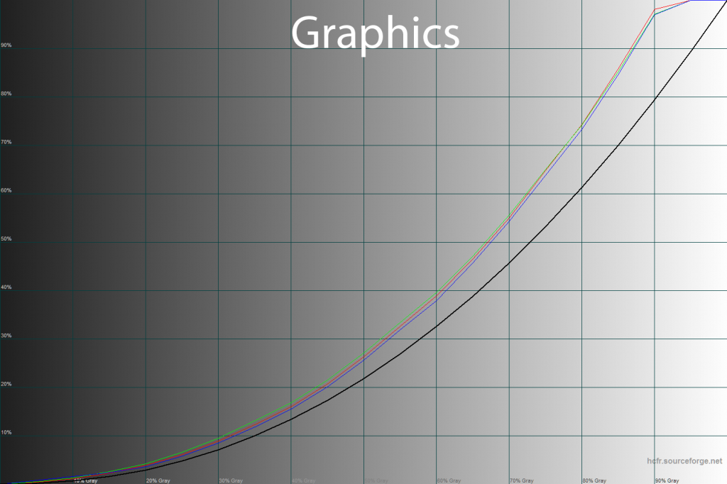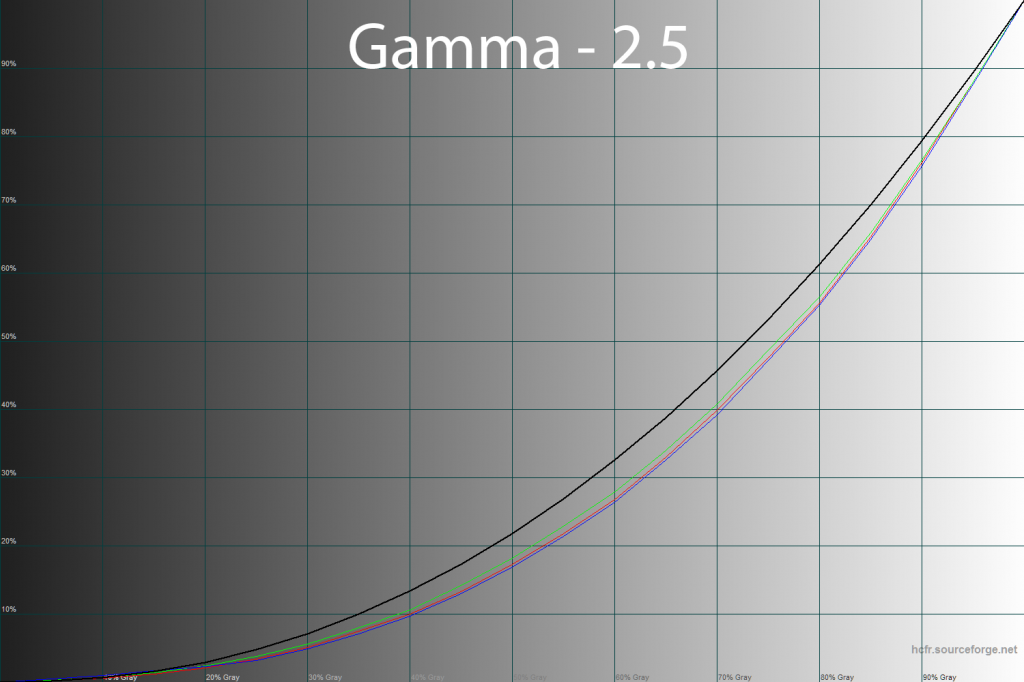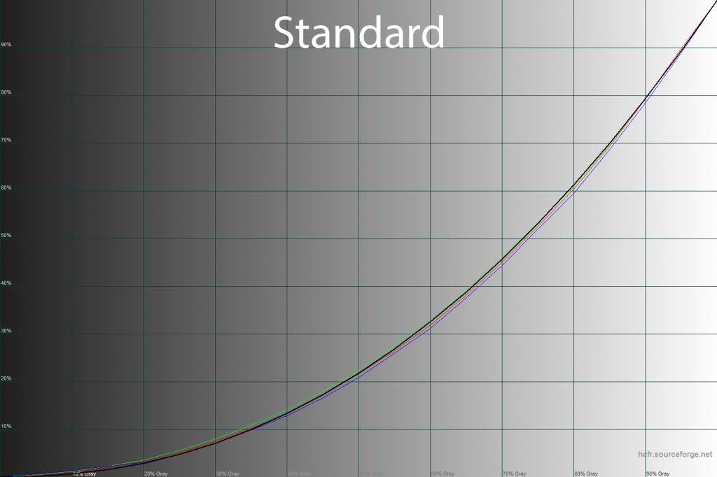 С помощью программы HCFR Colormeter и “откалиброванного” колориметра X-Rite Display Pro мною были изучены гамма-кривые во всех рассмотренных выше “режимах”, как изначально предустановленных, так и специально “разработанных”. Кроме того, по произведённым измерениям можно оценить расхождение серого клина (точек чёрно-белого градиента) на CIE диаграмме и сделать выводы о преобладании того или иного паразитного оттенка, либо его таковом отсутствии.
