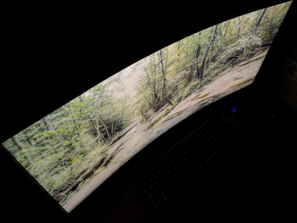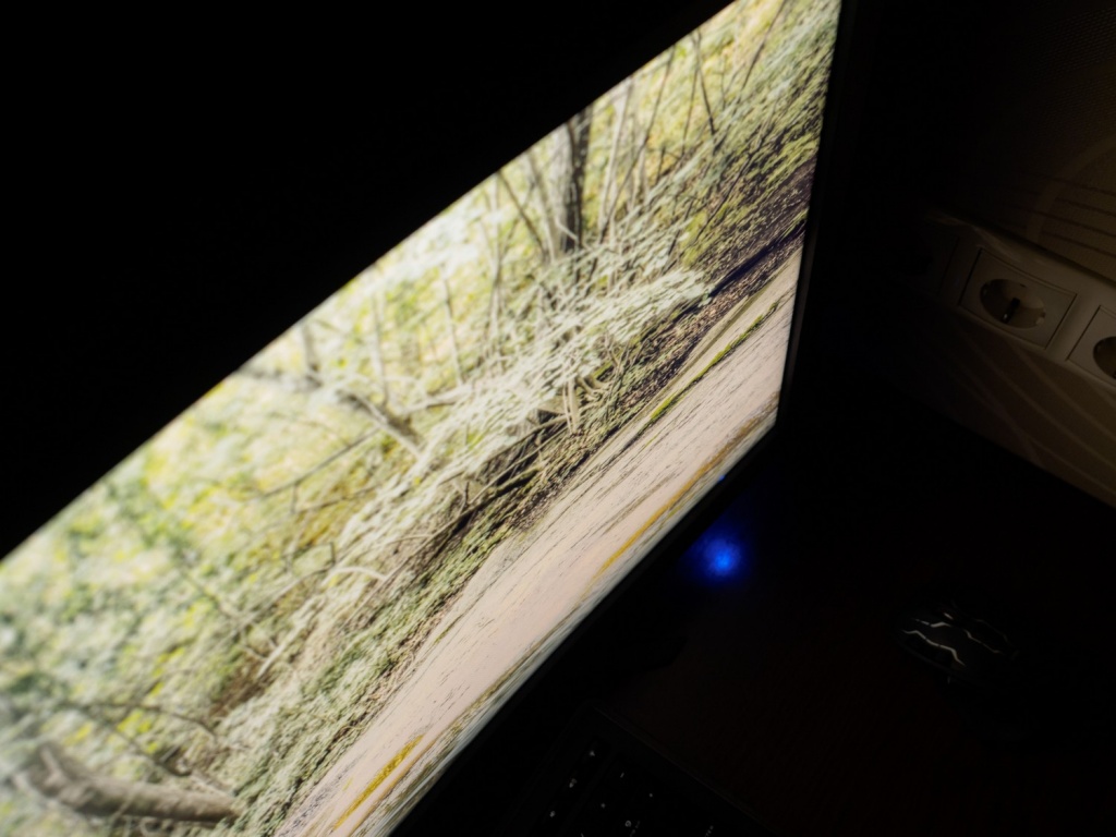 По сравнению с тем, что мне удалось увидеть на SVA-конкурентах от Samsung и ASUS монитор Z35P показал себя плохо. Реальность больше приближена ко второй фотографии, однако, даже при первом включении я сразу приметил для себя неравномерность подсветки на чёрном, которая проявила себя на тёмном интерфейсе Adobe Photoshop и тёмных обоях рабочего столе.
