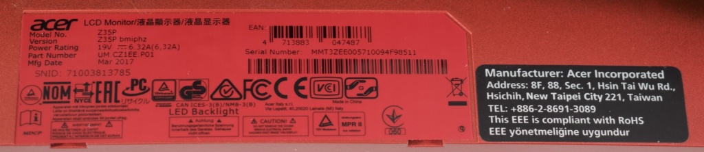 Являясь полноценным игровым монитор Z35P не смог обойтись без красно-чёрных вставок с надписью Predator и красных декоративных элементов корпуса.
