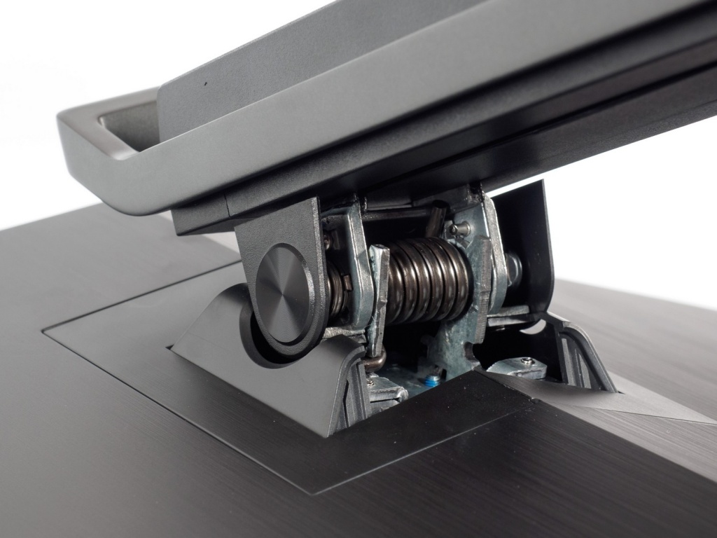 Благодаря дополнительному шарниру между центральной стойкой и подставкой монитор получил возможность поворота на 45 градусов вправо-влево, чем не могли похвастаться его предшественники. Конечно, доступен и наклон в диапазоне от -5 до +35 градусов, а также изменение высоты на 130 мм. Поддержки Pivot у монитора нет, но этого и следовало ожидать – ещё бы с такими габаритами и изогнутой панелью!
