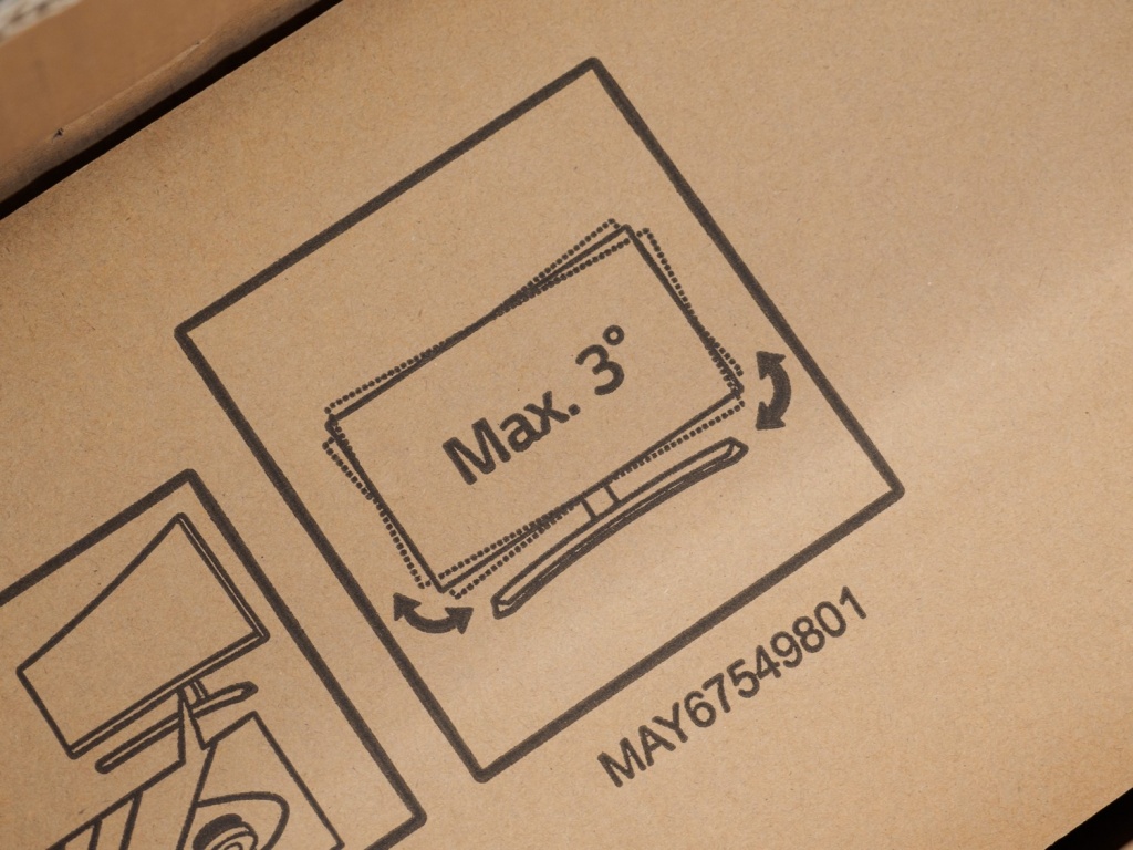 С двух сторон коробки представлены фотографии монитора, логотипы компании и пиктограммы с особенностями модели. Для удобства переноски есть две усиленные пластиковые ручки по бокам.