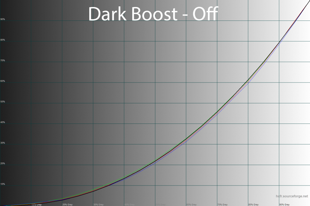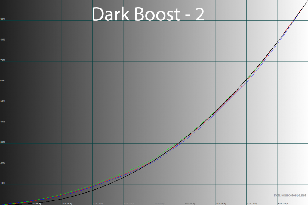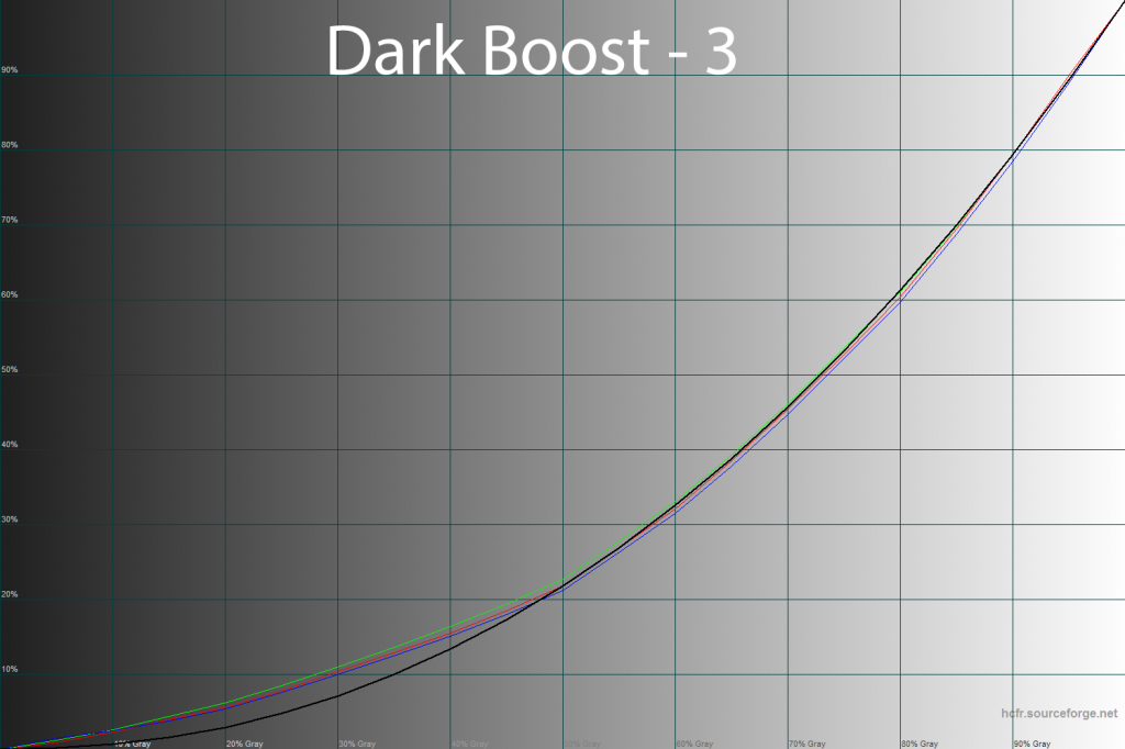 Основные изменения произошли за счёт снижения значения Brightness и правок усиления RGB. Менять контраст и Dark Boost не пришлось – положительных изменений в ходе их коррекции мы не обнаружили.
