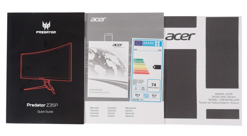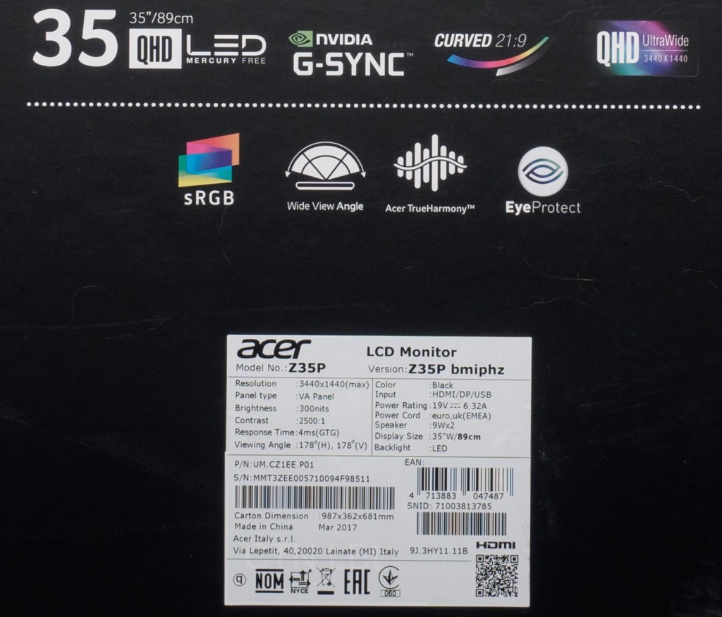 Монитор Acer Predator Z35P был представлен компанией в середине мая 2017 года. По всей вероятности, это был ответ на уже продающейся и протестированный нами ранее AOC AGON AG352UCG. Цена устройства сразу неприятно удивляет – 1100$ в США, преобразившиеся в 84000-85000 рублей на старте продаж в России, что почти на 30000 рублей дороже, чем за решение от конкурента, пускай которого, до сих пор, побаиваться наши сограждане.