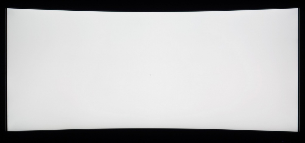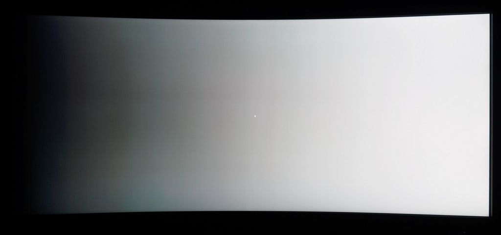 Фотография выше демонстрирует белое поле с минимальными коррекциями в графическом редакторе для более наглядного представления происходящего на экране с точки зрения равномерности светлого поля. Сильных проблем с равномерностью цветовой температуры не замечено, а вот вышеуказанные особенности подсветки по уровню яркости хорошо видны.