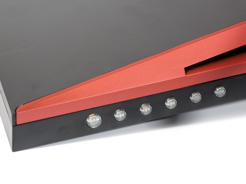 Люфты отсутствуют, корпус не поддаётся скручиванию ввиду не малой толщины, не скрипит при переноске, изменении положения или адекватном физическом воздействии. К качеству покраски и обработки элементов не придраться. Охлаждение электронной начинки происходит за счёт вентиляционных отверстий (перфораций), которые расположились в верхней зоне, где разместилась управляющая электроника.