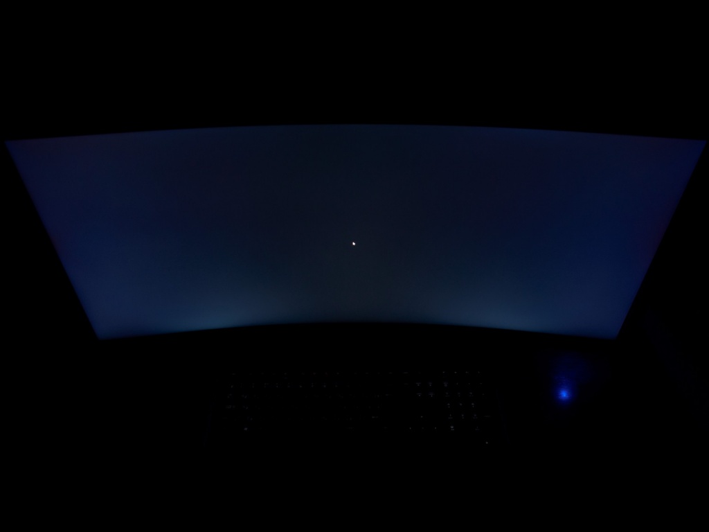 Не увидите вы ничего красивого и на чёрном поле. Мало того, что у монитора не самые высокие показатели коэффициента контрастности (всего в 1.5 раза выше, чем у качественных IPS), так он ещё и сильно «плавает» в зависимости от участка матрицы. При изменении угла просмотра на чёрном поле появляются различные паразитные оттенки, видимость, расположение и оттенок которых меняется в зависимости от положения пользователя перед экраном. Дополнительно становится видна неоднородность матрицы, а точнее цветовые пятна. Такова современная реальность ультрашироких 35-дюймовых *VA.
