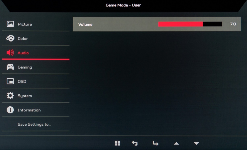 Сэкономили в Acer Predator Z35P и на системе управления, которая, почему-то, обошлась без пятипозиционного джойстика управления. Вместо него в мониторе установлены шесть физических клавиш на нижней грани корпуса, одна из которых является клавишей питания (чуть больше других).